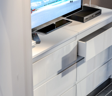 Комод Медея имеет довольно компактные габариты – ширина 80 см, высота 86 см и глубина 44 см. Под столешницей расположены три вместительных выдвижных ящика, механизмы которых имеют солидный ресурс. Комод Медея выполнен из современного прочного материала. Благодаря белому цвету и глянцевому покрытию фасадов выдвижных ящиков, комод Медея смотрится стильно и не громоздко. Столешницу можно дополнить стеклянной поверхностью Медея СБ-2553 (код товара 536570298).