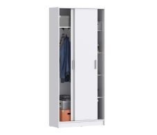 Шкаф-купе Терра идеально создан для малогабаритных помещений. Назначение универсальное. Шкаф будет полезным элементом хранения вещей и одежды в спальне, гостиной, прихожей. В шкафу 2 отделения –со штангой и с полками. Ширина 90см, материал ЛДСП.