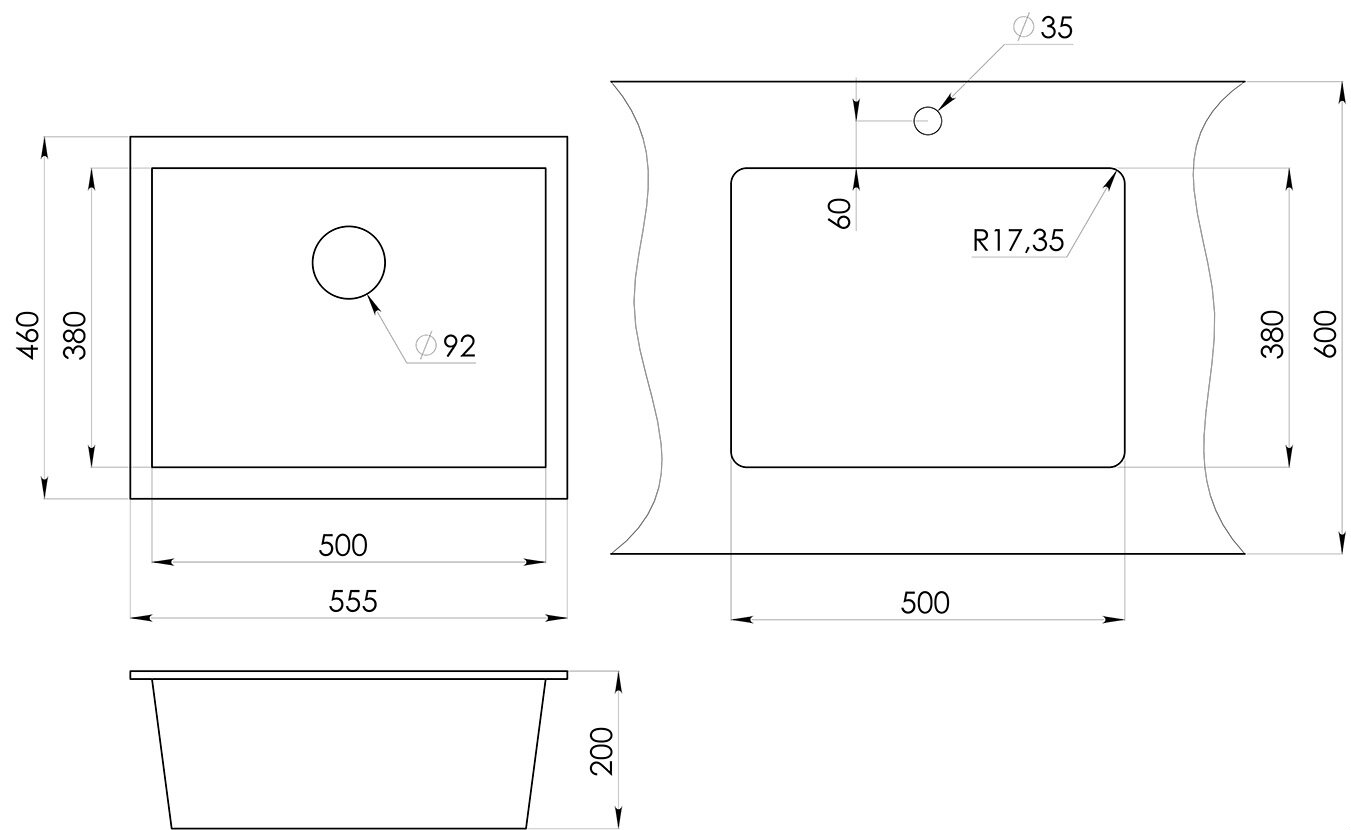 • Размеры чаши и глубина мойки: 500 x 380 мм и глубина мойки 200 мм.