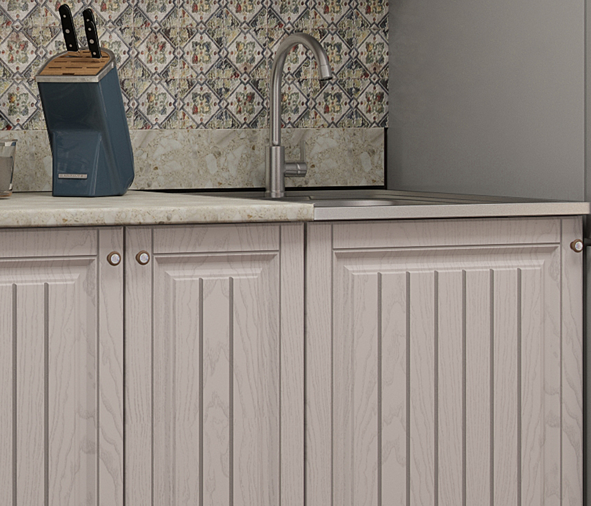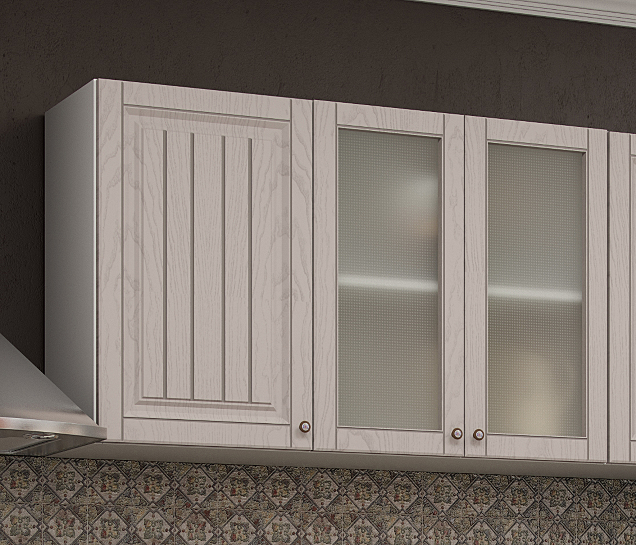 Цвет совершенно не тот, что на картинке, больше похож на цвет с картинки трюфель этих же кухонь. Текстуры нет как на фото. Цвет в общем какао с оттенком фиолетового, матовый. Но так как изначально я не могла выбрать между цветом трюфель и мускат, то в итоге и получила нечто среднее.