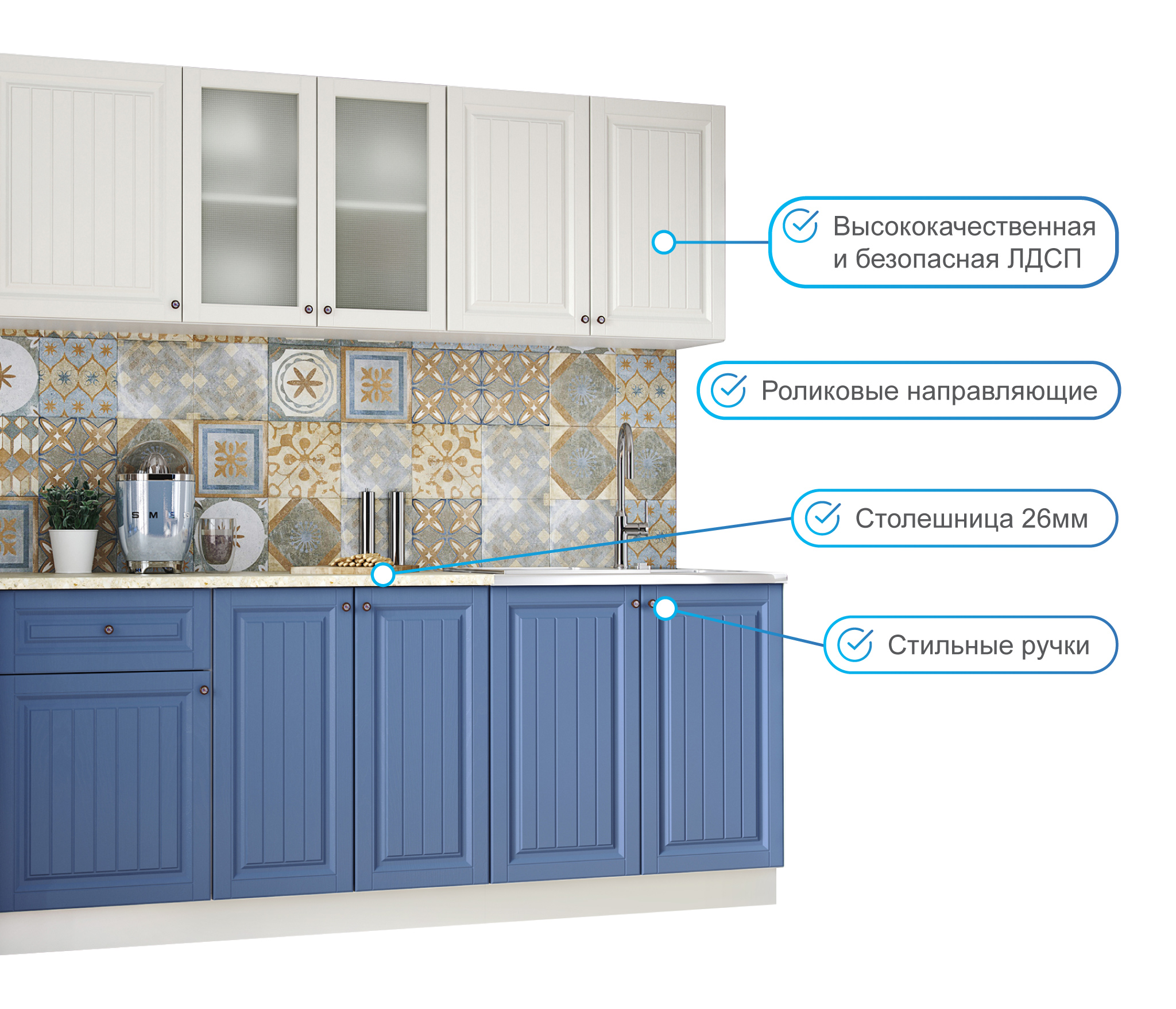 Кухня Хозяюшка 2,0 м Акация белая/Деним МДФ Код R0000244951