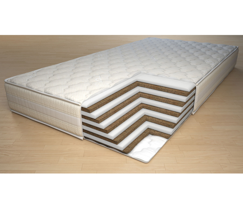 Беспружинный двусторонний матрас высокой степени жесткости, состоящий из чередующихся слоев пенополиуретана (2 см) и латексированной кокосовой койры (2 см). Пенополиуретан вспененный синтетический материал, традиционно используемый для изготовления матрасов и мебели. Обладает высокой воздухопроницаемостью, хорошим тепло- и влагообменом, гиппоаллергенен, выдерживает сильные и продолжительные нагрузки, придает матрасу мягкость. Латексированная кокосовая койра представляет собой натуральный растительный наполнитель из спрессованных волокон кокосового ореха, пропитанных специальным составом на основе натурального латекса. Это прочный, долговечный, воздухопроницаемый материал, придающий изделию упругость, необходимую жесткость. Материал гипоаллергенен и обладает антистатическим эффектом. Модель поставляется в несъемном чехле из трикотажа, стеганого на синтепоне, с 3D сеткой по периметру.