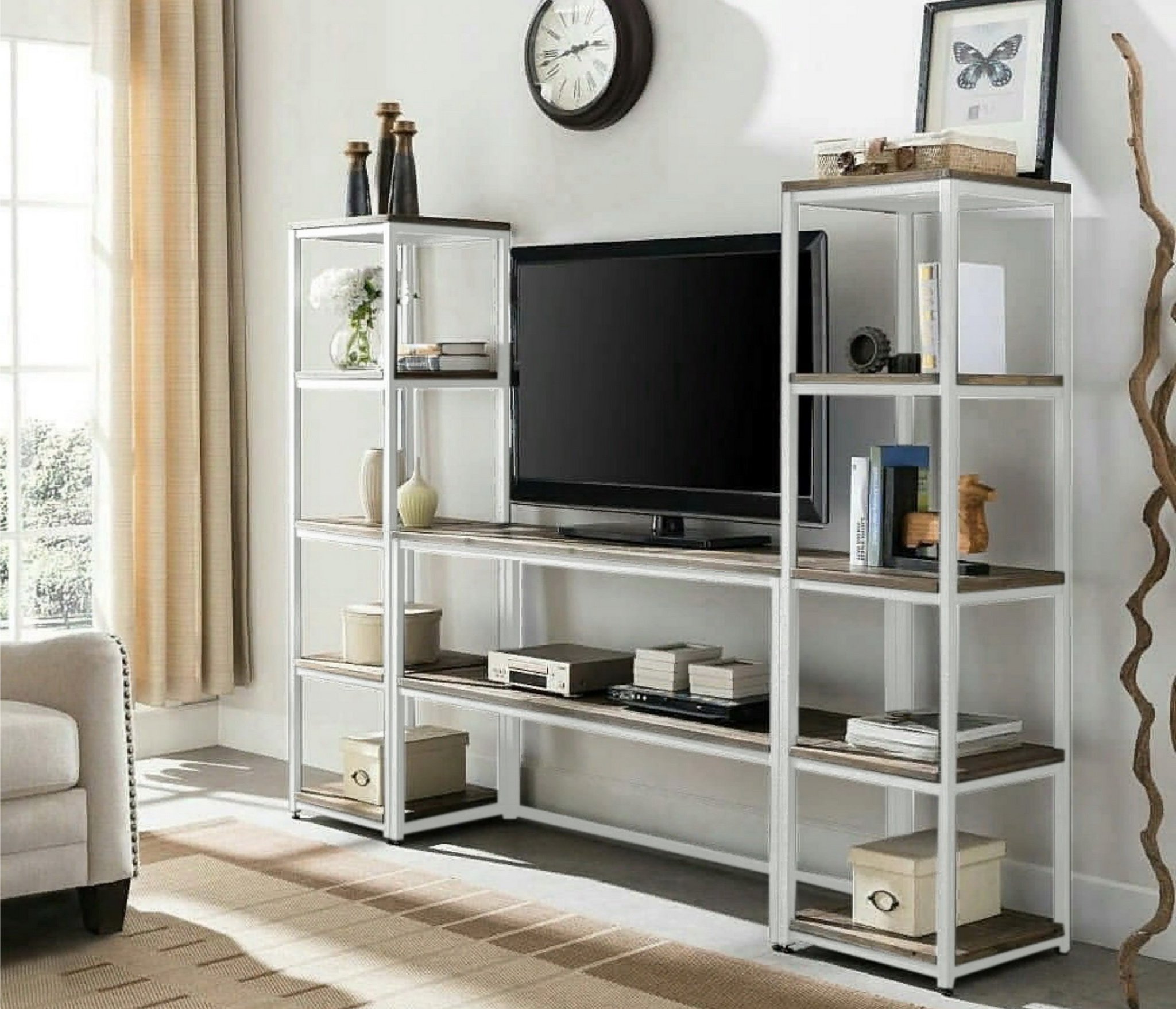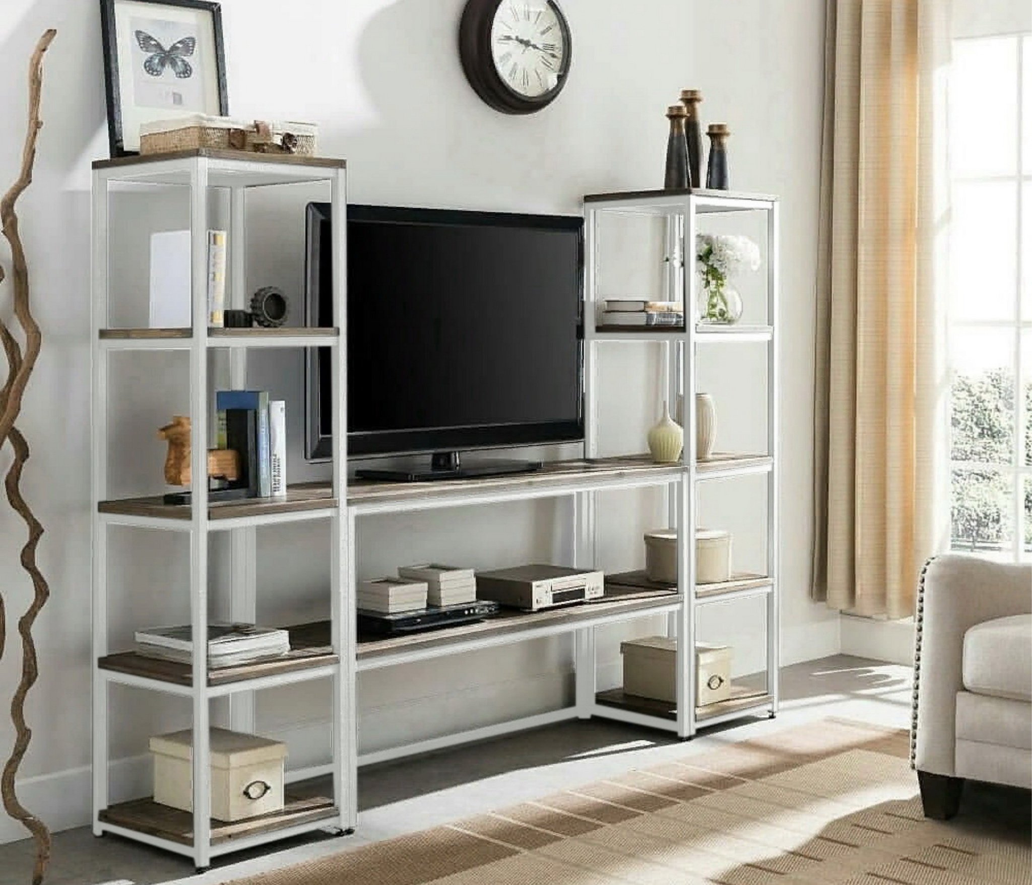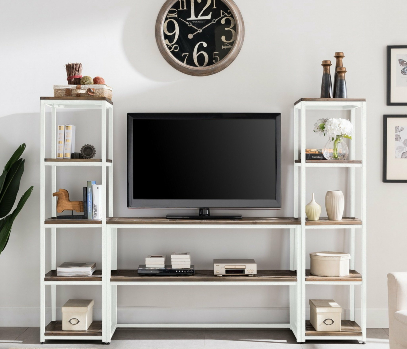 со стеллажом, глянцевые фасады, С полками, С ТВ тумбой