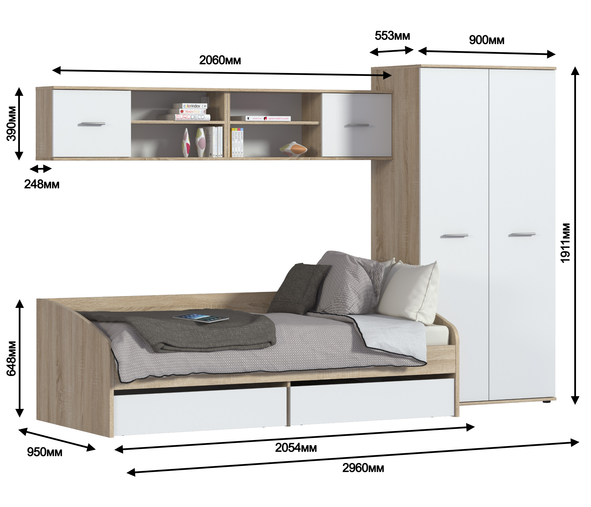 Комплект для молодежной комнаты Мамбо (Дуб Сонома)