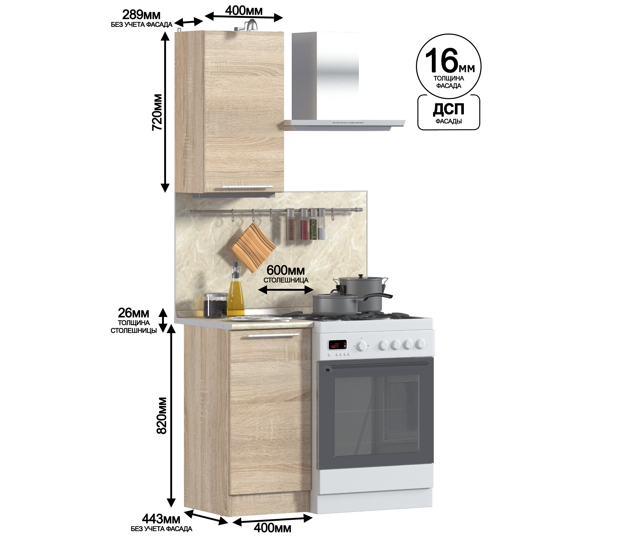 Кухонный гарнитур Ангелина Классик Дуб Сонома 40 см Код 00000188099