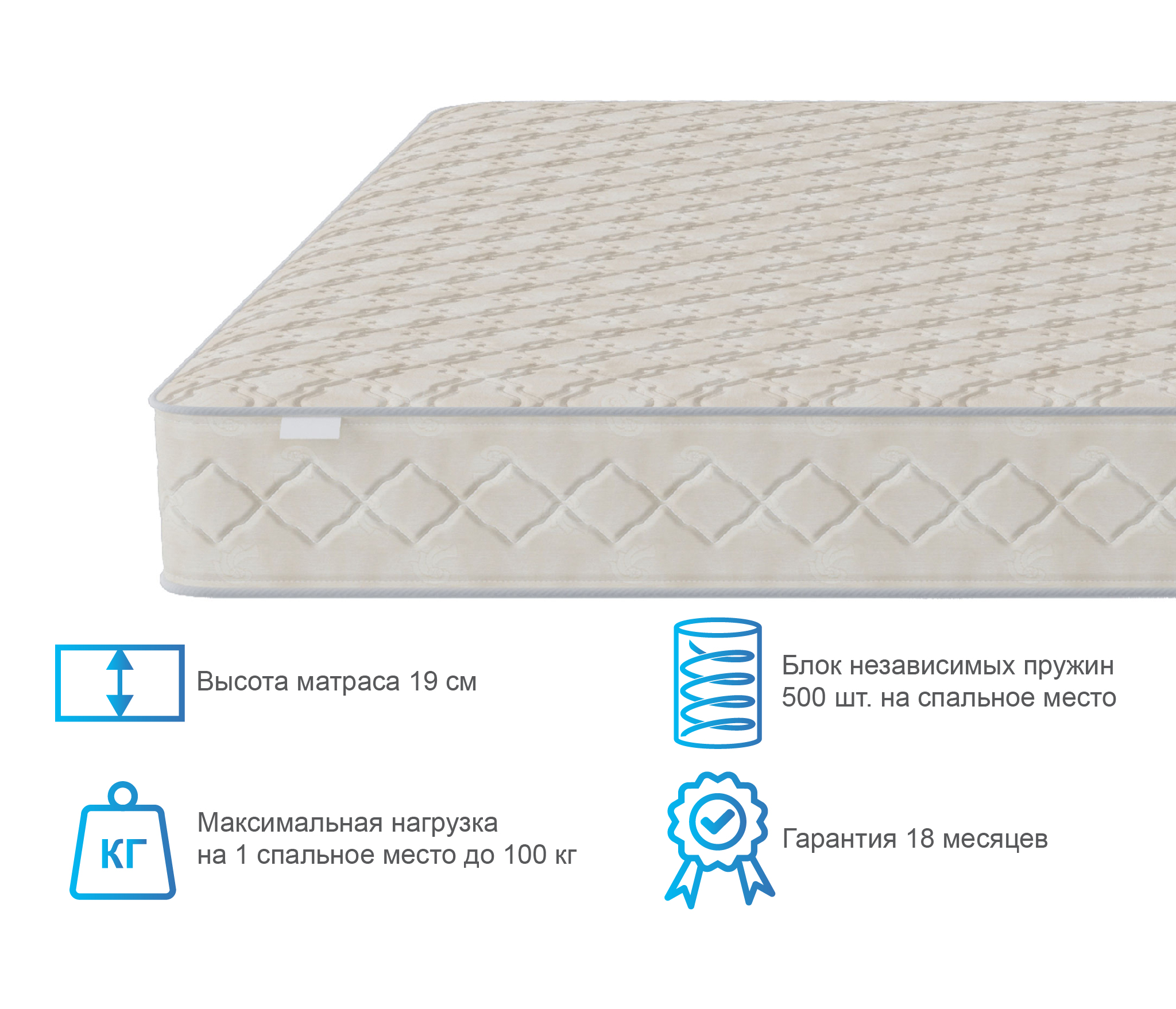 Чехол из хлопкового жаккарда обеспечит надежную защиту матрасу и сохранит превосходный внешний вид на долгие годы. Материал экологически чистый, не вызывает аллергии и тем самым отлично подходит для людей склонных к аллергии. Модель рассчитана на нагрузку в 100 кг на одно спальное место.