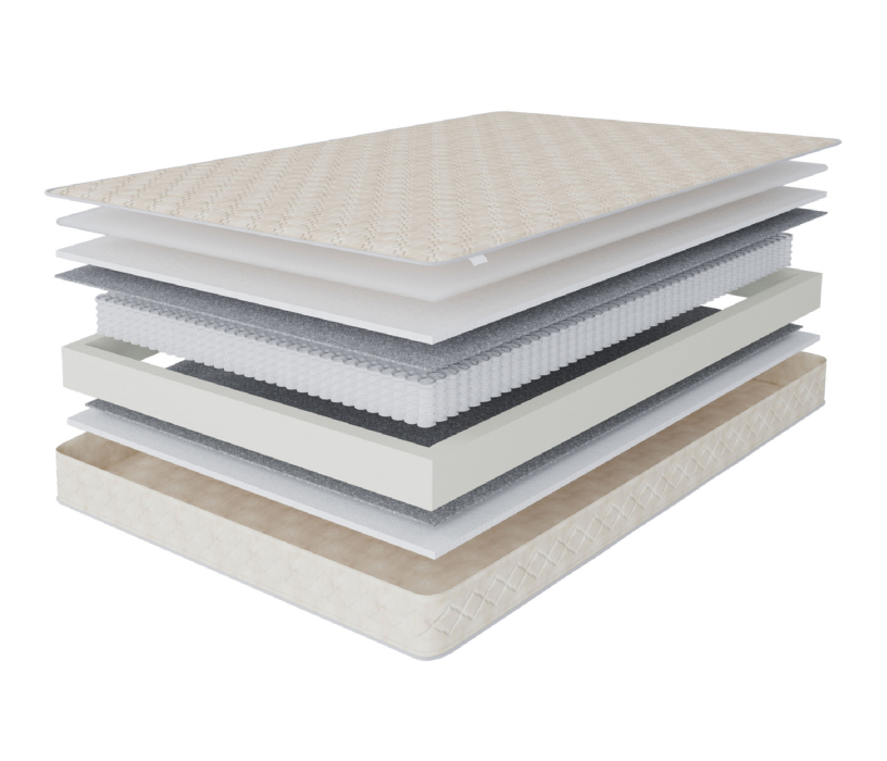 Матрас: СтруттоФайбер Лен Н20мм, блок независимый Poket spring Н140 мм, 256 пружин на 1м2, 256 пружин на 1м2, система усиления периметра матраса