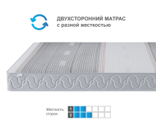 Матрас имеет 5 зон жесткости для индивидуальной поддержки каждой части тела. Жесткость каждой зоны подобрана таким образом, чтобы обеспечить надежную опору позвоночнику, сохраняя его в правильном положении. Такие свойства матраса с использованием индивидуального зонирования максимально усиливают поддерживающий эффект более тяжелых частей тела и позволяют матрасу хорошо подстраиваться под контуры человеческого тела.