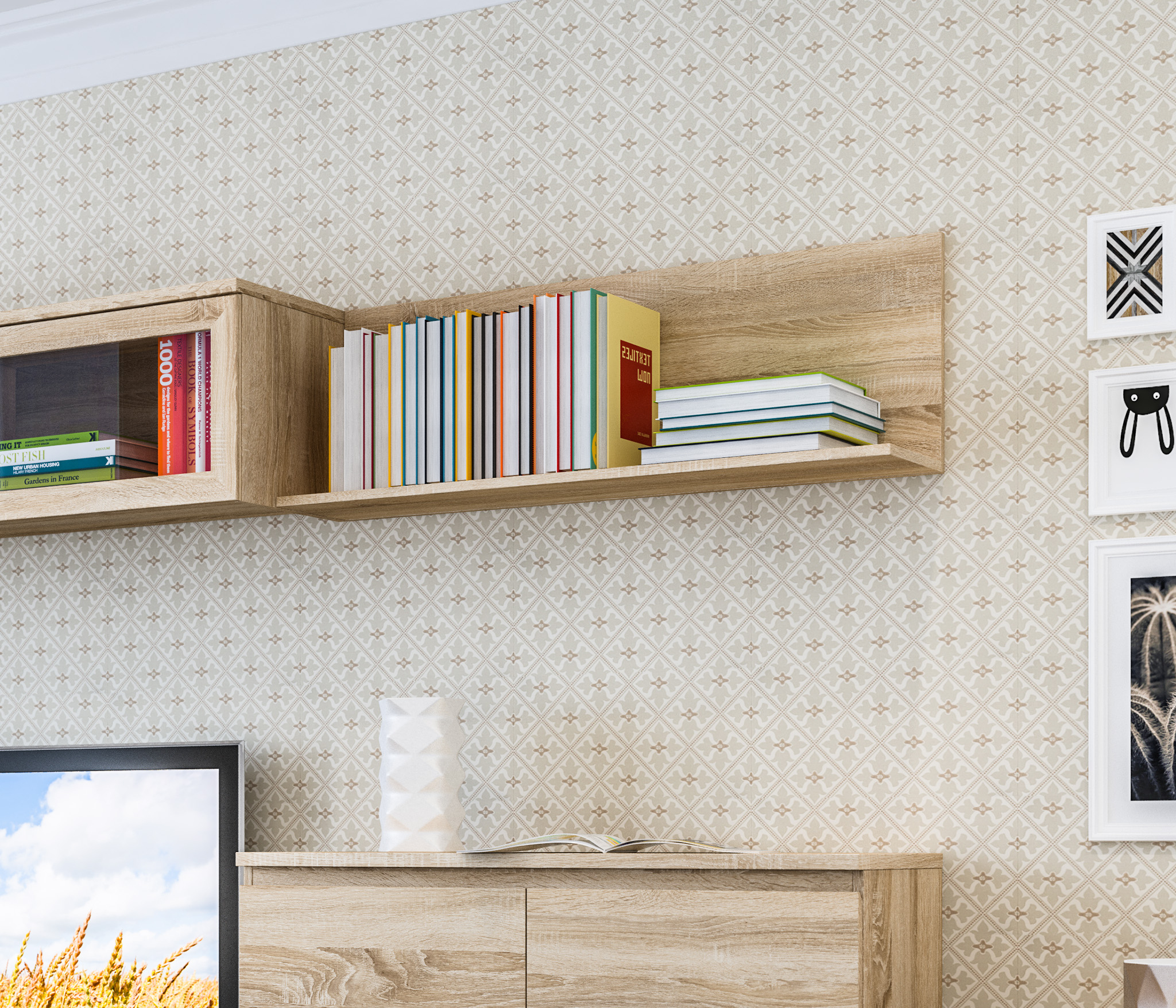 Покупал две тумбы в спальню. Очень хорошо гармонируют с обоями и шторами. Собрал сам, сборка простая. Порадовала не высокая цена в этом магазине.