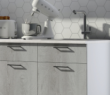 Материал фасада - МДФ. Верх фасадов - Морская волна софт, низ фасадов - Дуб седой.