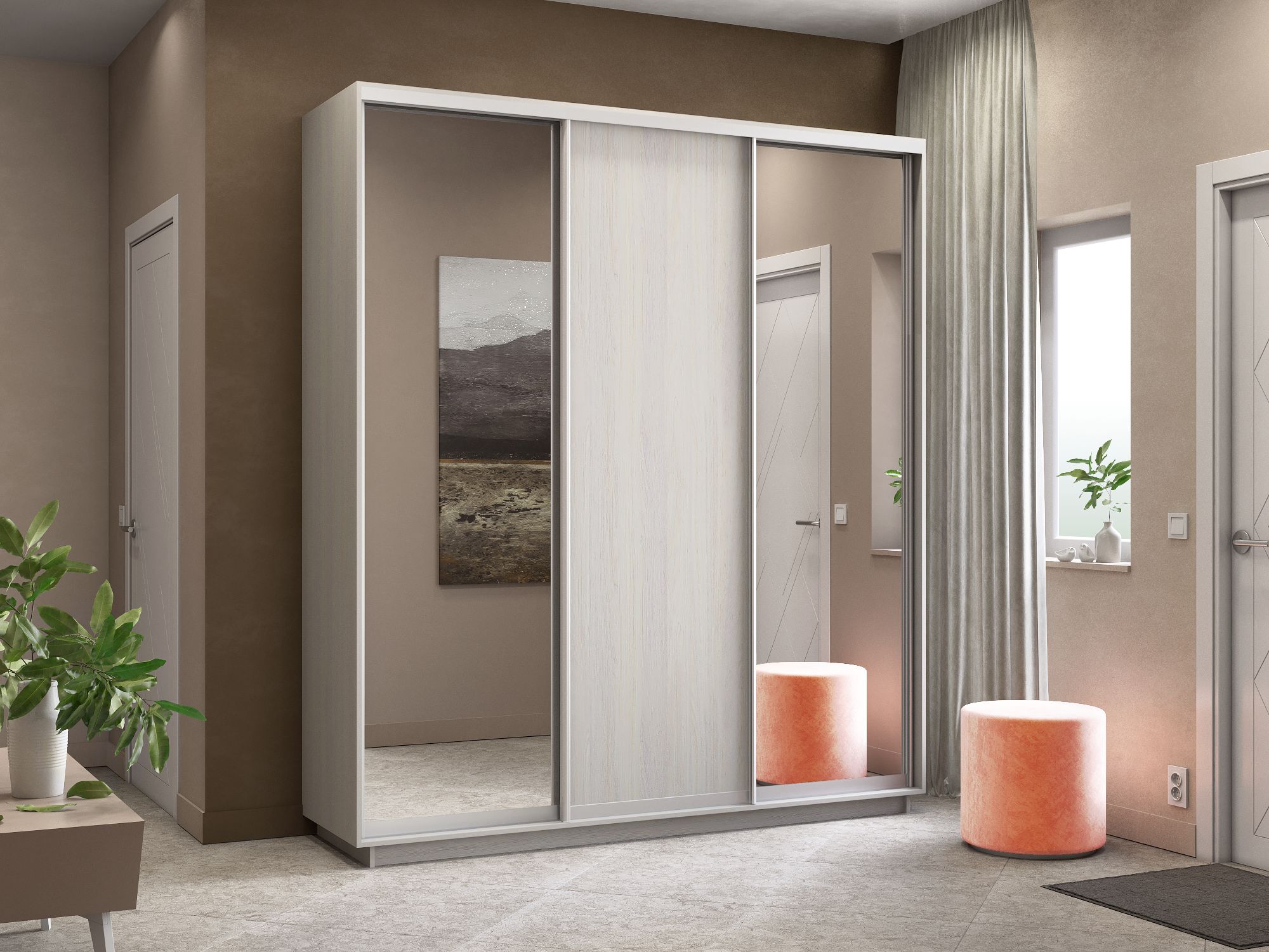 Отзывы о Столплит Шкаф-купе Экспресс Медиум (2 зеркала) трио 2200 x 2100 x 450 Ясень Анкор светлый