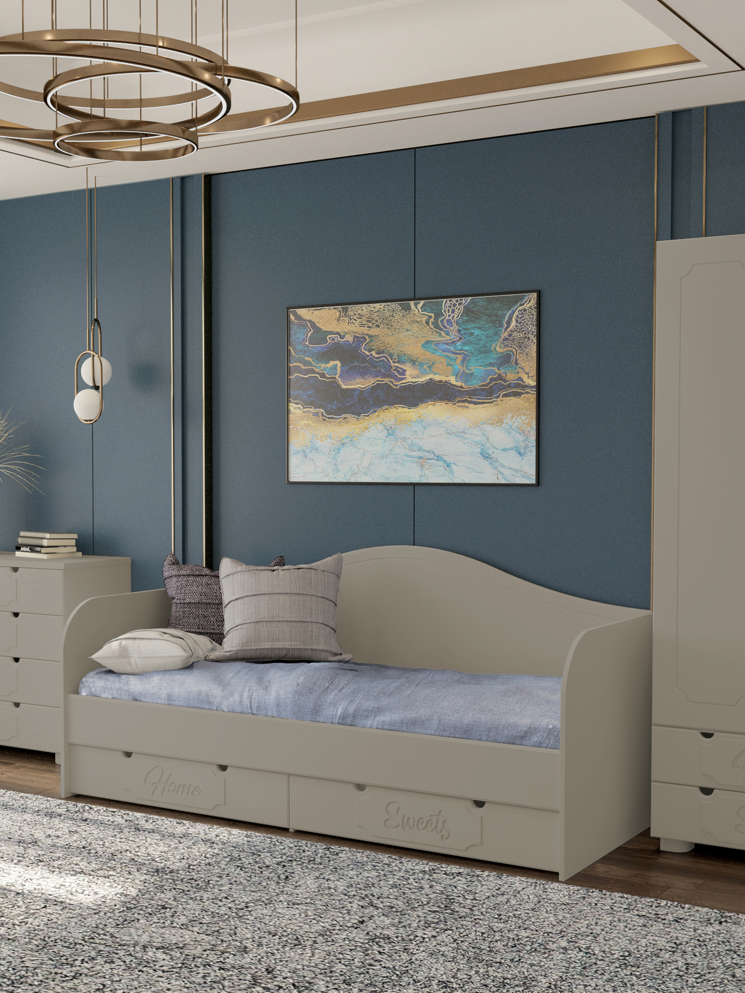 Система мебели Дримстар включает в себя отдельные самостоятельные модули, сочетающие в себе функциональность и уникальность дизайна. С базовым набором модулей легко оформить интерьер любого помещения. Все модули можно комбинировать между собой. Фасады украшены надписями, которые придают моделям оригинальный вид. Коллекция Дримстар поможет вам в оформлении стильного и современного интерьера.