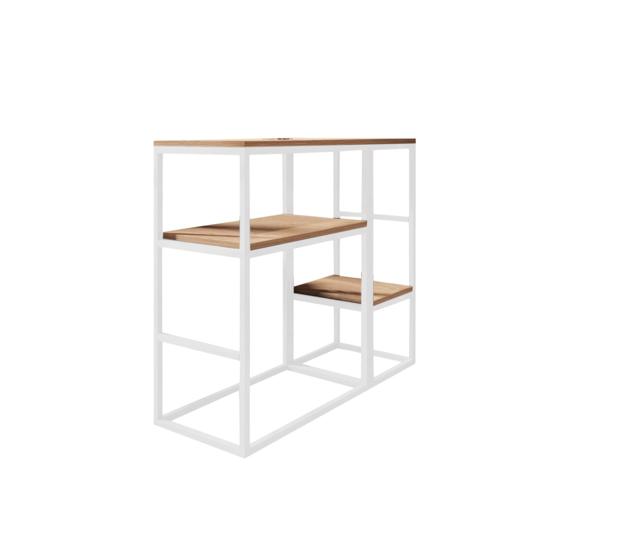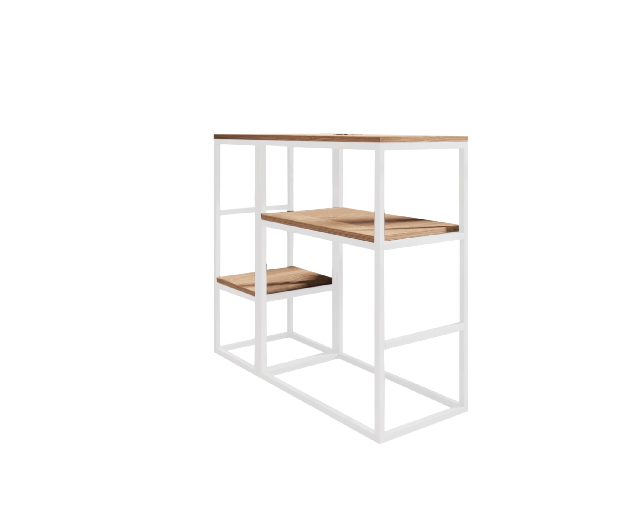 Каркас: профильная труба 20х20 мм.Прочное полимерно-порошковое покрытие черного, белого и серого цвета Дерево: массив сосны 20 мм, покрытое специальным маслом для мебели, цвета на выбор: бесцветный, белый, серый, махагон, орех, морёный дуб, черный, клён, черный графит, голубой графит, темное золото графит, золото графит.