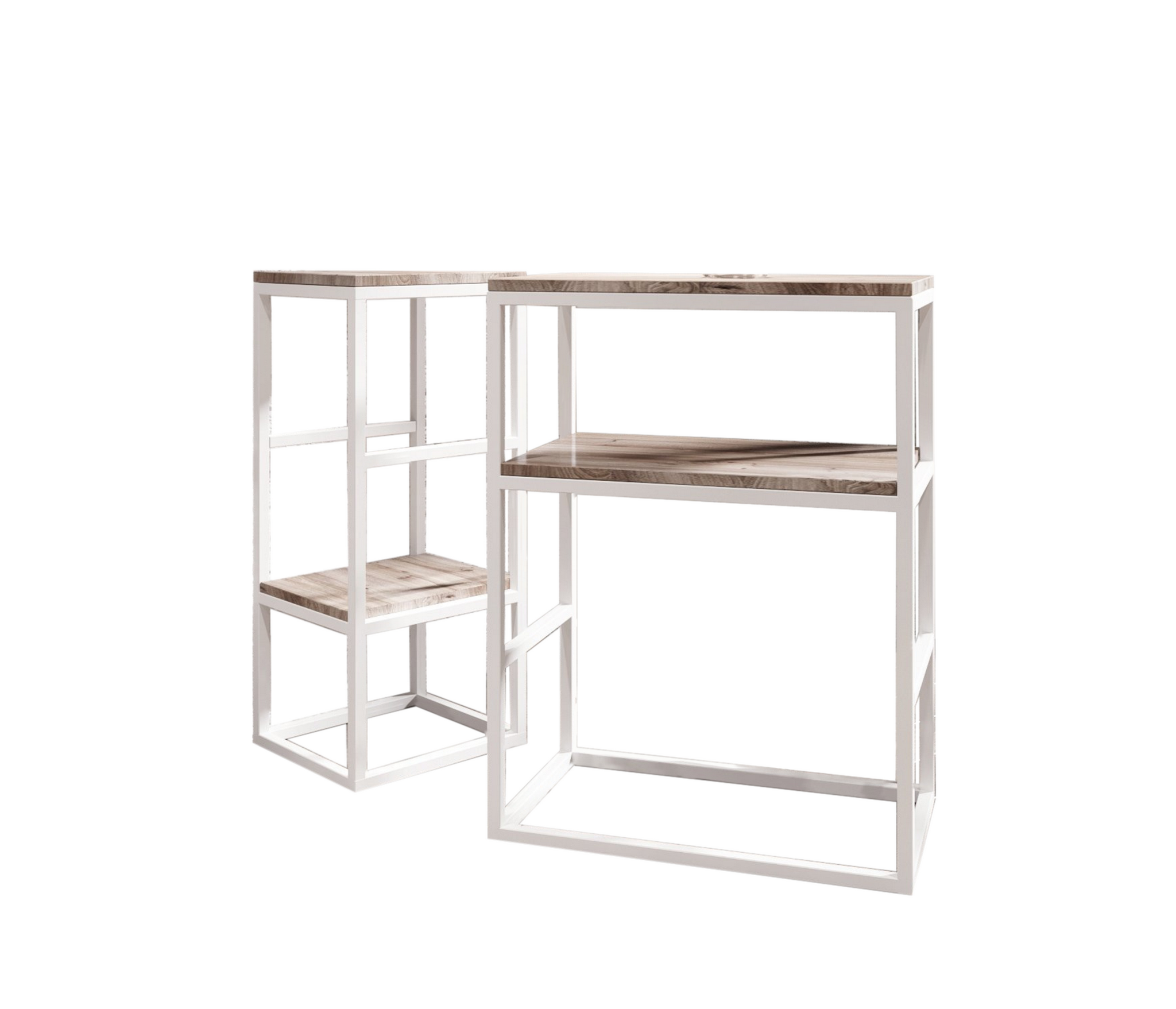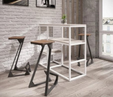 Каркас: профильная труба 20х20 мм.Прочное полимерно-порошковое покрытие черного, белого и серого цвета Дерево: массив сосны 20 мм, покрытое специальным маслом для мебели, цвета на выбор: бесцветный, белый, серый, махагон, орех, морёный дуб, черный, клён, черный графит, голубой графит, темное золото графит, золото графит.