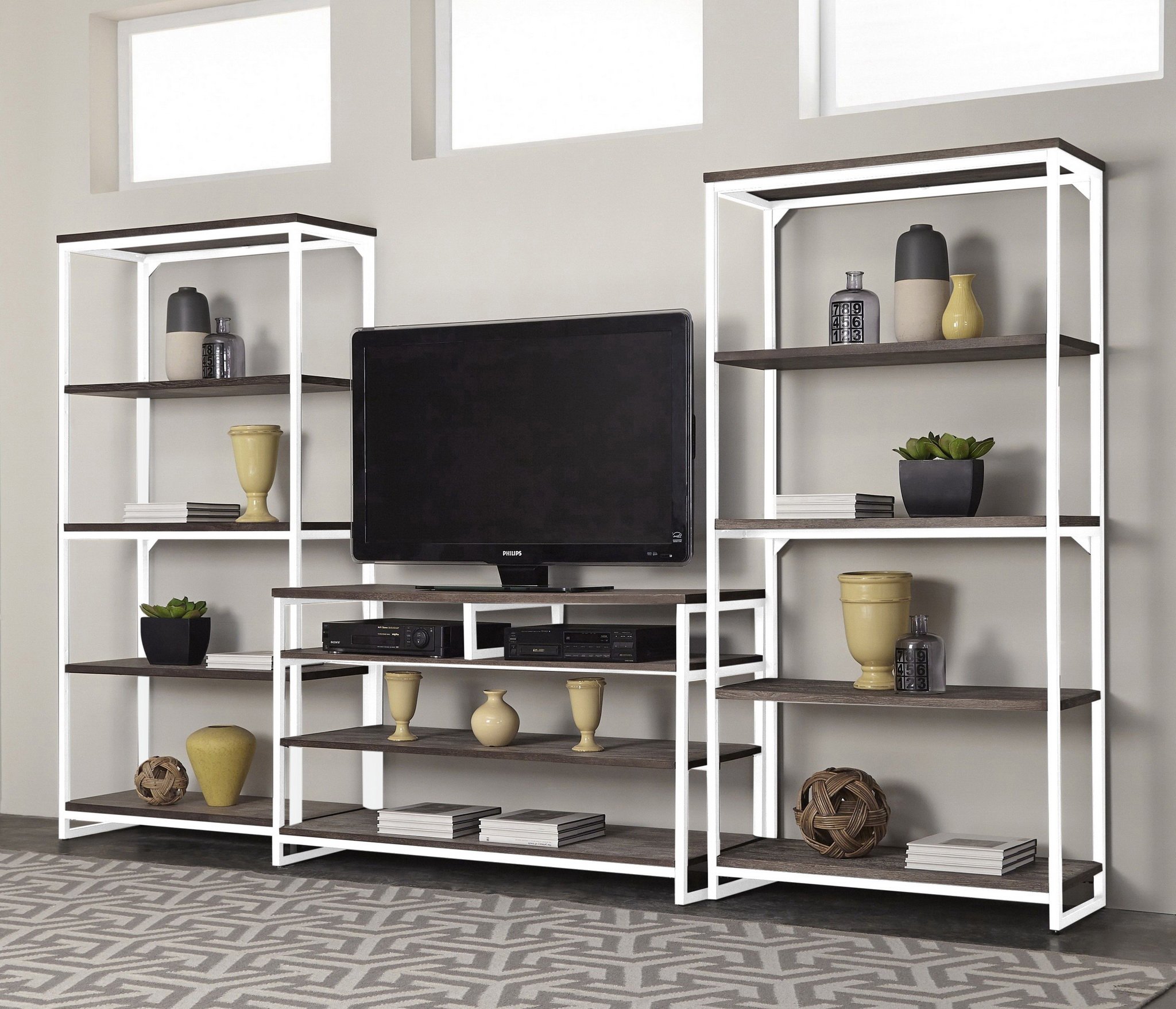 С ТВ тумбой , со стеллажом, глянцевые фасады, С полками