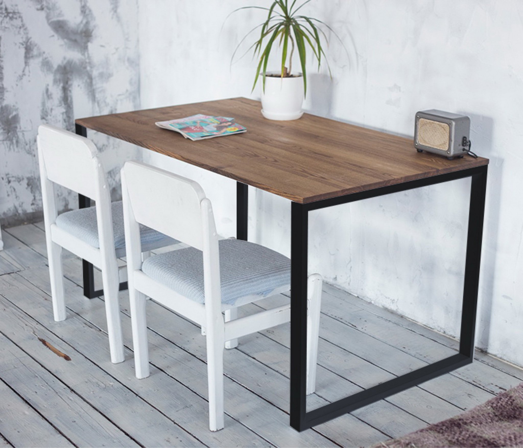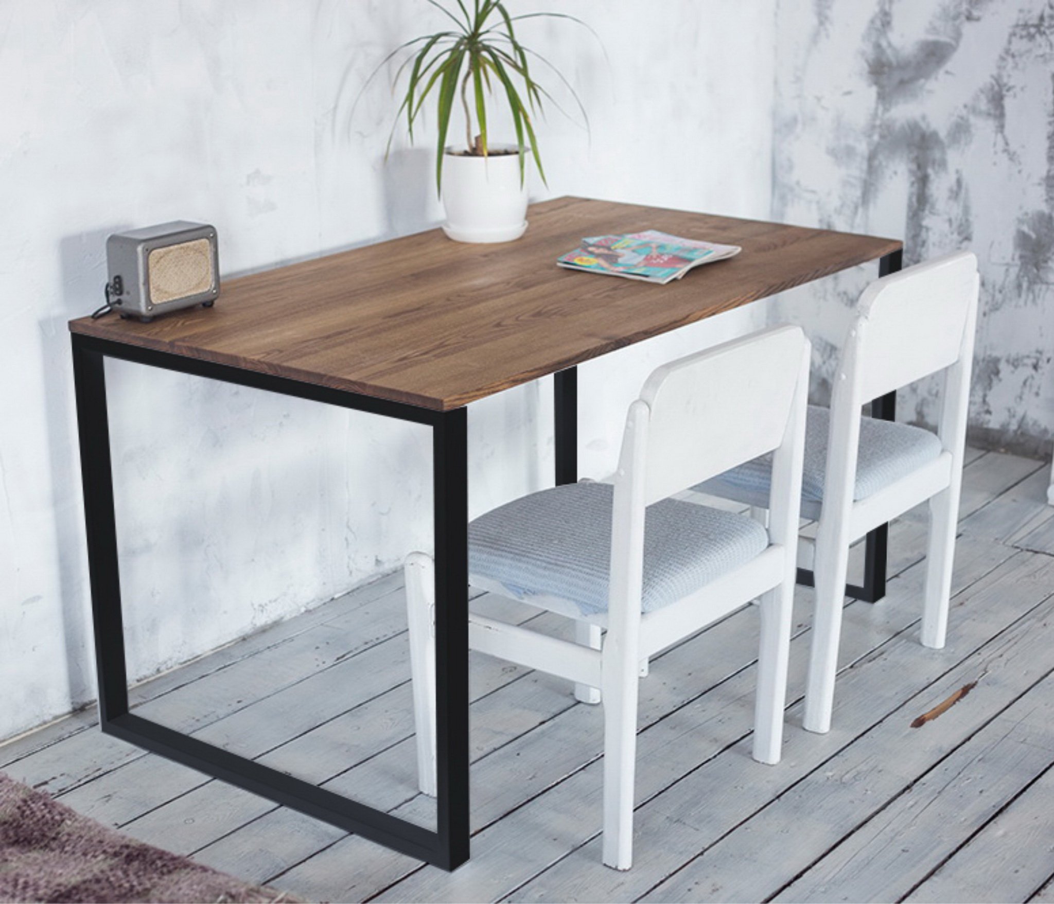 Каркас: профильная труба 40х20 мм.Прочное полимерно-порошковое покрытие черного, белого и серого цвета Дерево: массив сосны 20 мм, покрытое специальным маслом для мебели, цвета на выбор: бесцветный, белый, серый, махагон, орех, морёный дуб, черный, клён, черный графит, голубой графит, темное золото графит, золото графит.