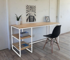 Каркас: профильная труба 20х20 мм.Прочное полимерно-порошковое покрытие черного, белого и серого цвета Дерево: массив сосны 20 мм, покрытое специальным маслом для мебели, цвета на выбор: бесцветный, белый, серый, махагон, орех, морёный дуб, черный, клён, черный графит, голубой графит, темное золото графит, золото графит.