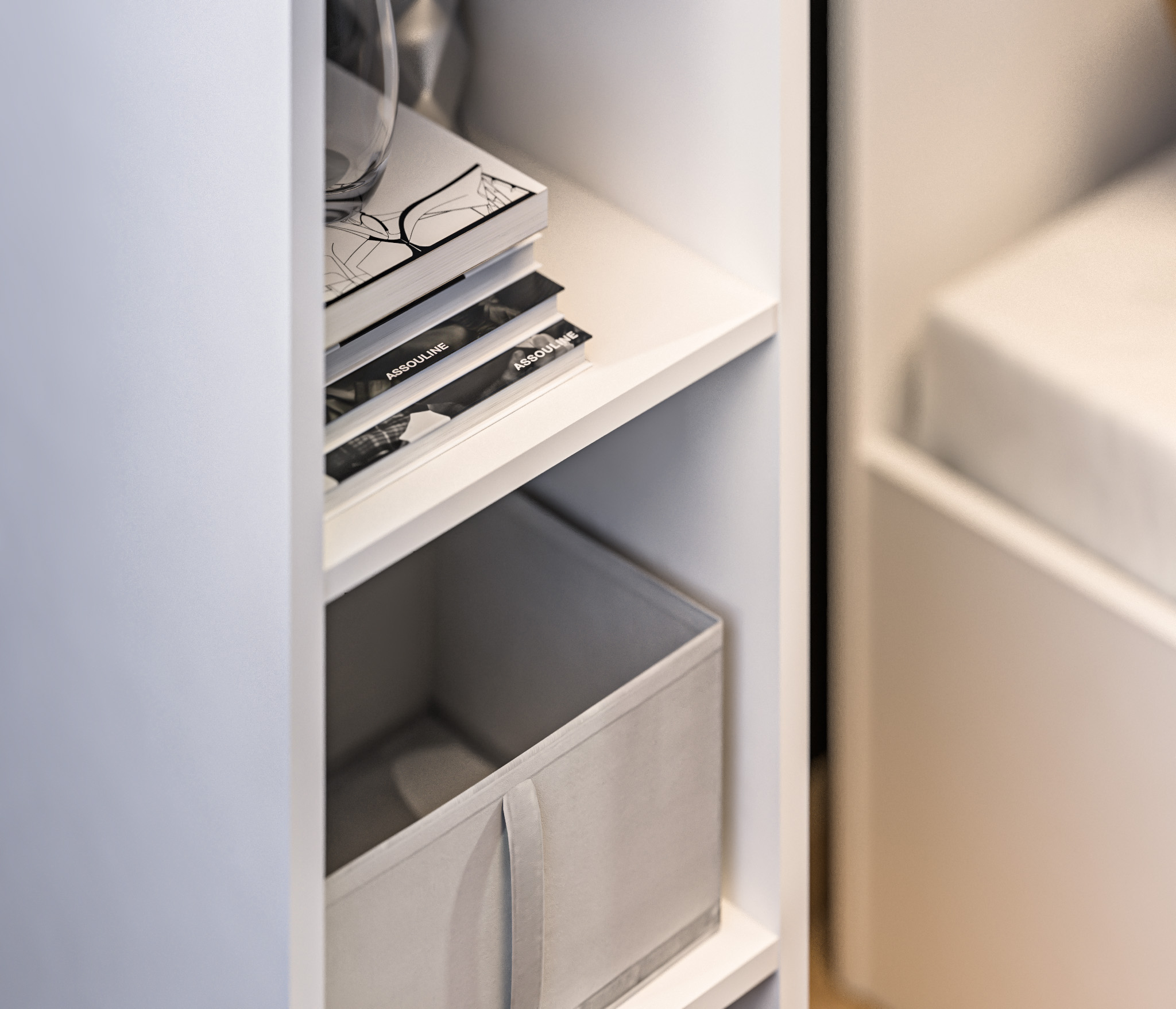 Дополнить стеллаж можно ящиками Кито СБ-3247 или дверцей Кито СБ-3248.Минималистичный дизайн, белый цвет, компактность – всё это создаёт впечатление легкости и помогает организовать хранение в детской, спальне, гостиной, кабинете и прихожей.