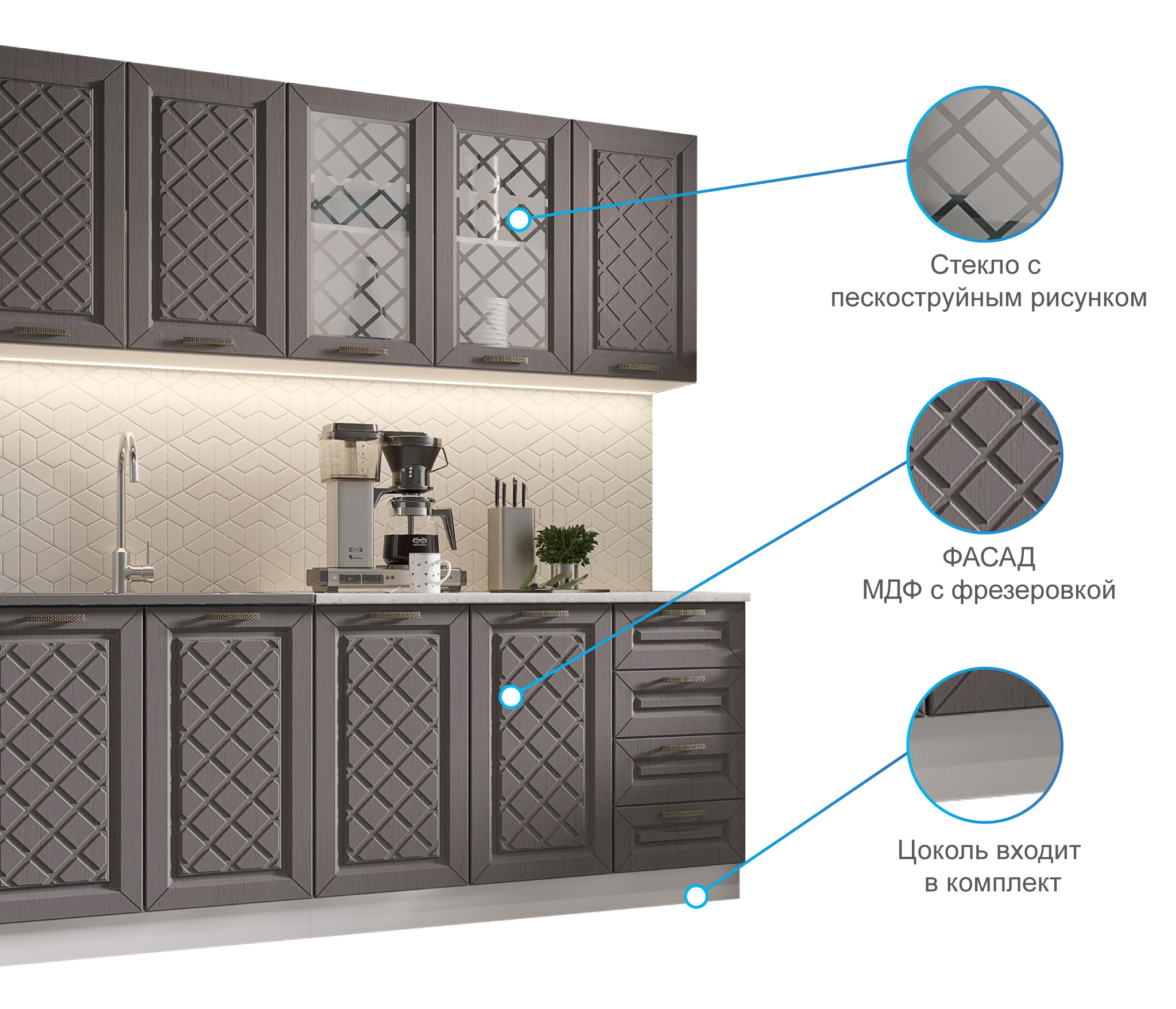 Кухня Агава 2,0 м Трюфель МДФ Код R0000281253