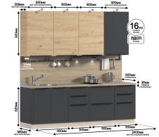 Кухонный гарнитур ЛОФТ Регина Песочный/Диамант серый, Дуб дикий 2,4 м (Песочный/Диамант серый)