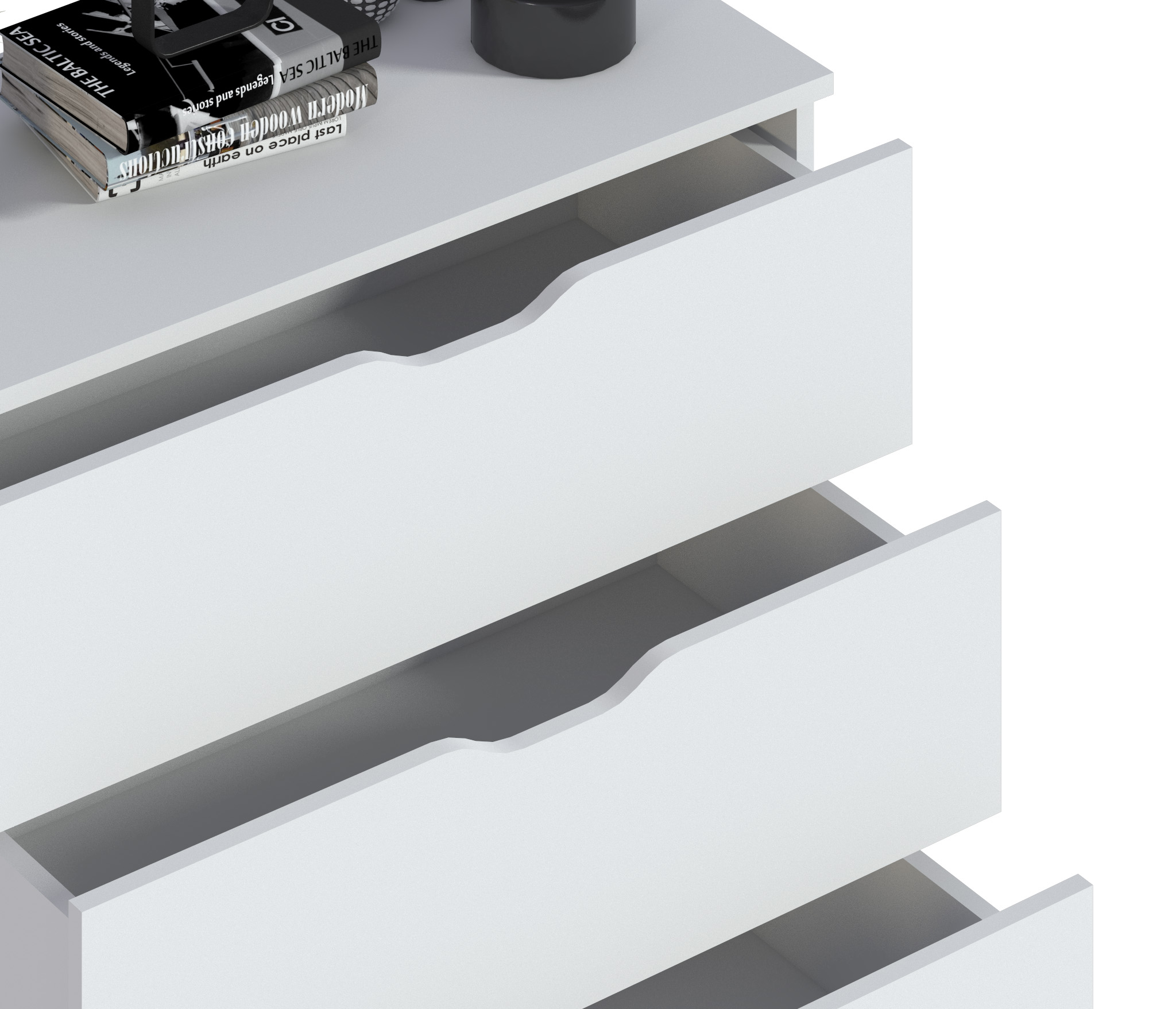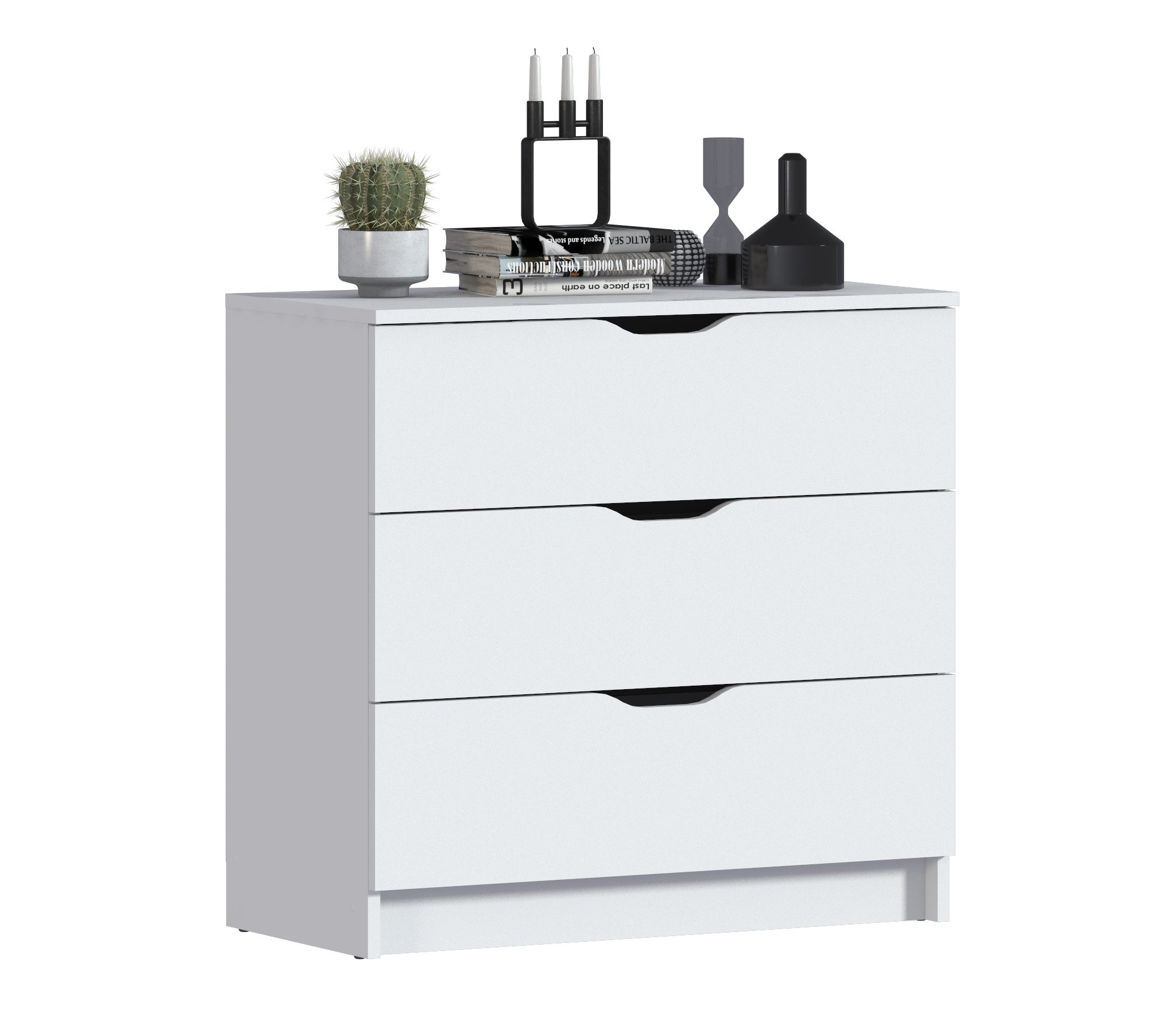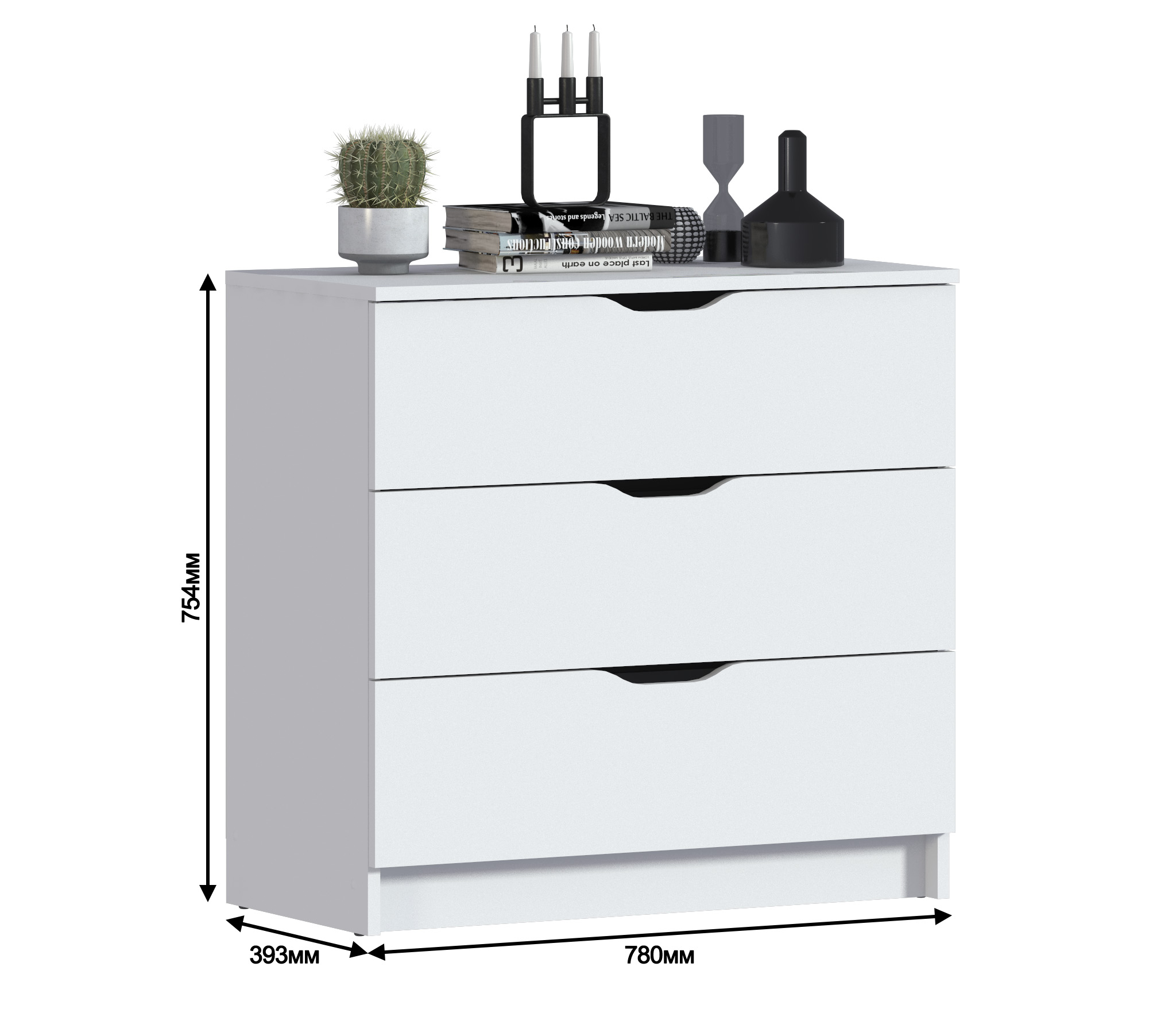 Комод для вещей из коллекции "Бруклин" имеет лаконичный дизайн и компактные размеры, 75х78х39 см. Комод выполнен из практичного материала, ЛДСП, поэтому подойдет даже для ванной комнаты. Белый комод прекрасно впишется в светлое и даже темное помещение, цвет универсален и поддержит любой интерьер. Расположите Бруклин СБ-3249 в гостиную - наполните книгами или важными документами, поставьте в спальню - там он послужит для хранения одежды, передвиньте в детскую - используйте для игрушек. Данный комод с ящиками настолько универсален, что найдет применение в любой квартире или помещении. Мебель укомплектована качественной фурнитурой: ящики легко выдвигаются и задвигаются обратно. Три просторных ящика вместительные и удобные. Отсутствие ручек - дизайнерское решение, пользоваться мебелью удобно, нет выступающих частей, внешний вид лаконичный и стильный.