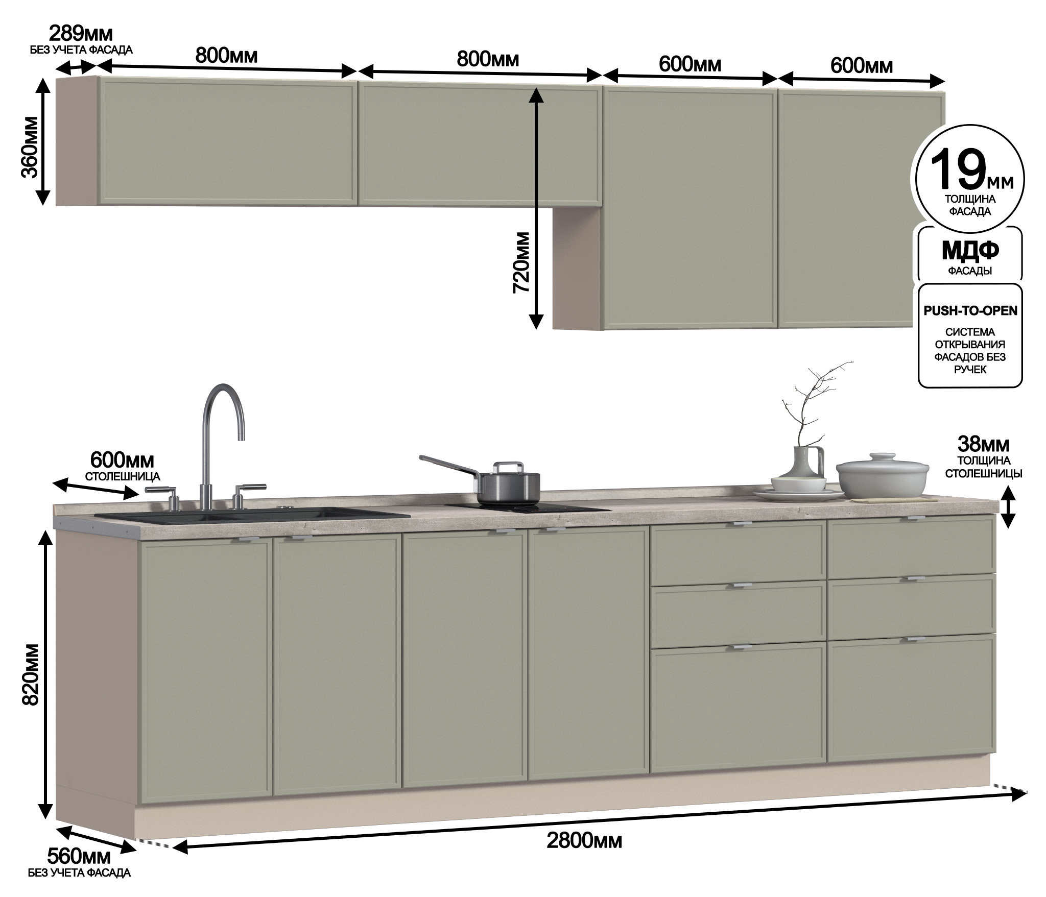 Кухонный гарнитур Регина Квадро Песочный / Латте 2,8 м (Латте)