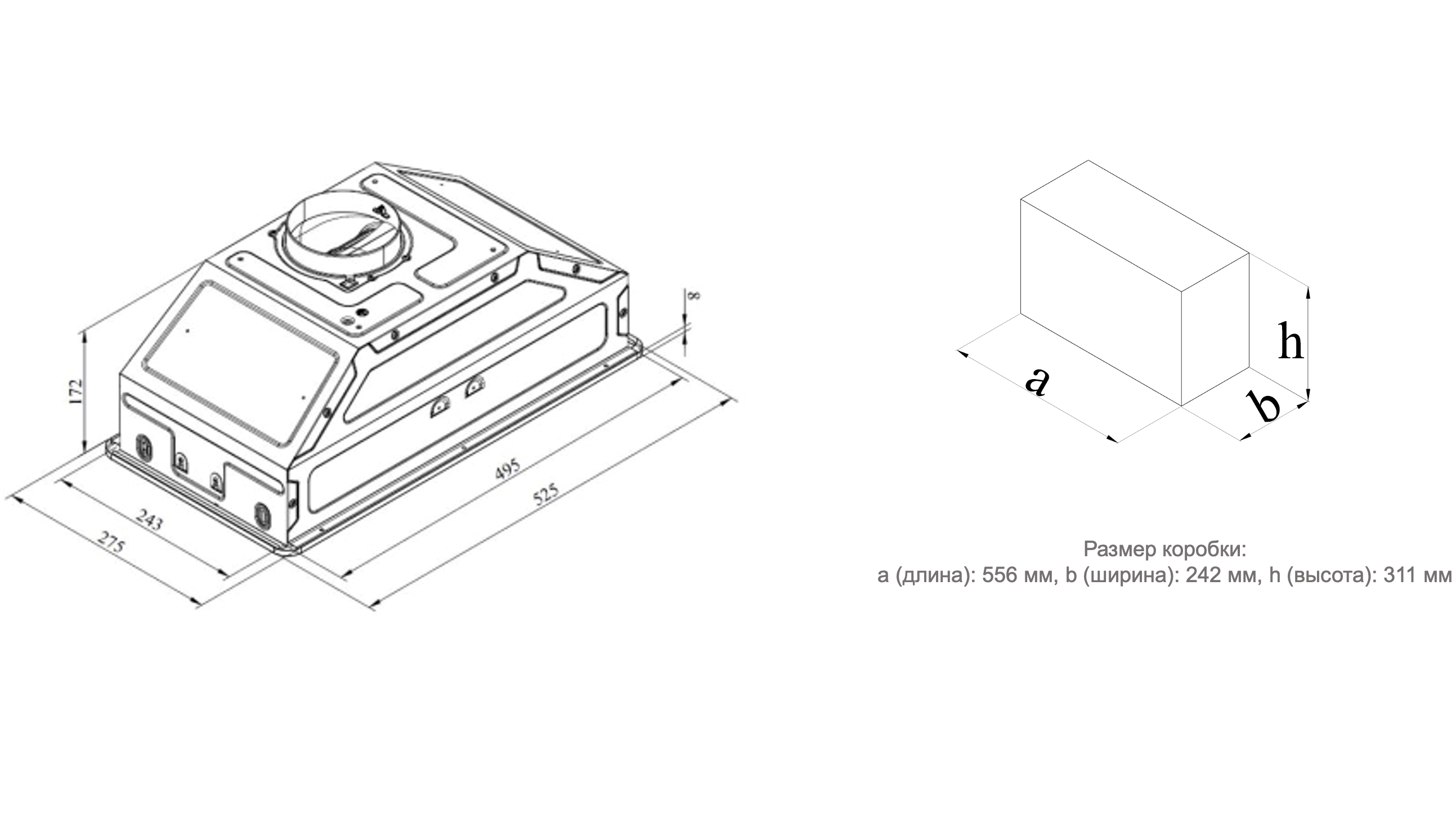 Размер встраивания (ВхШхГ) мм: 172х495х243