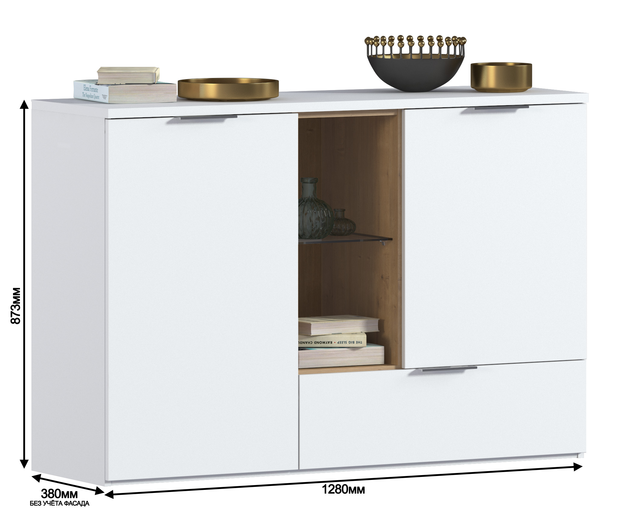 Комод Мальта СБ-3264 Белый,Дуб Гамильтон/МДФ Белый (Белый,Дуб Гамильтон)
