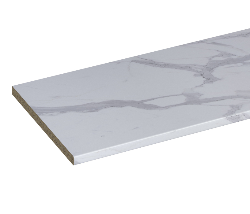 Основа – влагостойкое ДСП, толщиной 38 мм. Пластик толщиной 04-0,5 мм. Задний срез обработан меламиновой кромкой. Низ закрыт защитным покрытием бэкинг, которое защищает ДСП от влаги. Столешница оснащена уникальным каплесборником (специальная силиконовая накладка, монтируемая в паз на передней части столешницы снизу). Препятствует стеканию капель воды со столешницы на фасады и встроенную техник, расположен под углом 12,7 гр. Произведена на полностью автоматизированном немецком оборудовании. Поставляется в упаковке.