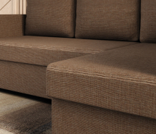 Каркас дивана «Джессика» выполнен из бруса и высокопрочной ЛДСП – ламинированной древесно-стружечной плиты, надежно удерживающей крепежные элементы. Мягкие части модели созданы на основе современного материала ППУ (пенополиуритана), полученного из синтетических полимеров и обработанного антигрибковым и антибактериальным составами. Материал долговечен, экологически безопасен, быстро восстанавливается после смятия, не плесневеет, не впитывает и не выделяет пыль. Обивка из рогожки приятна на ощупь, устойчива к разрывам и истиранию, не мнется, не растягивается и легко чистится.Простоту эксплуатации этого дивана обеспечивает выкатной механизм «Дельфин», позволяющий двумя движениями создать ровное и упругое спальное место размером 1400 х 1900 мм – достаточно выкатить вперед основание, а в освободившуюся нишу опустить спинку. Поэтому можно купить угловой диван «Джесика» для ежедневного пользования, а лаконичный дизайн и нейтральная цветовая гамма снимают ограничения при выборе дополнительных элементов интерьера – журнального столика, кресел, стеллажей и элементов декора.
