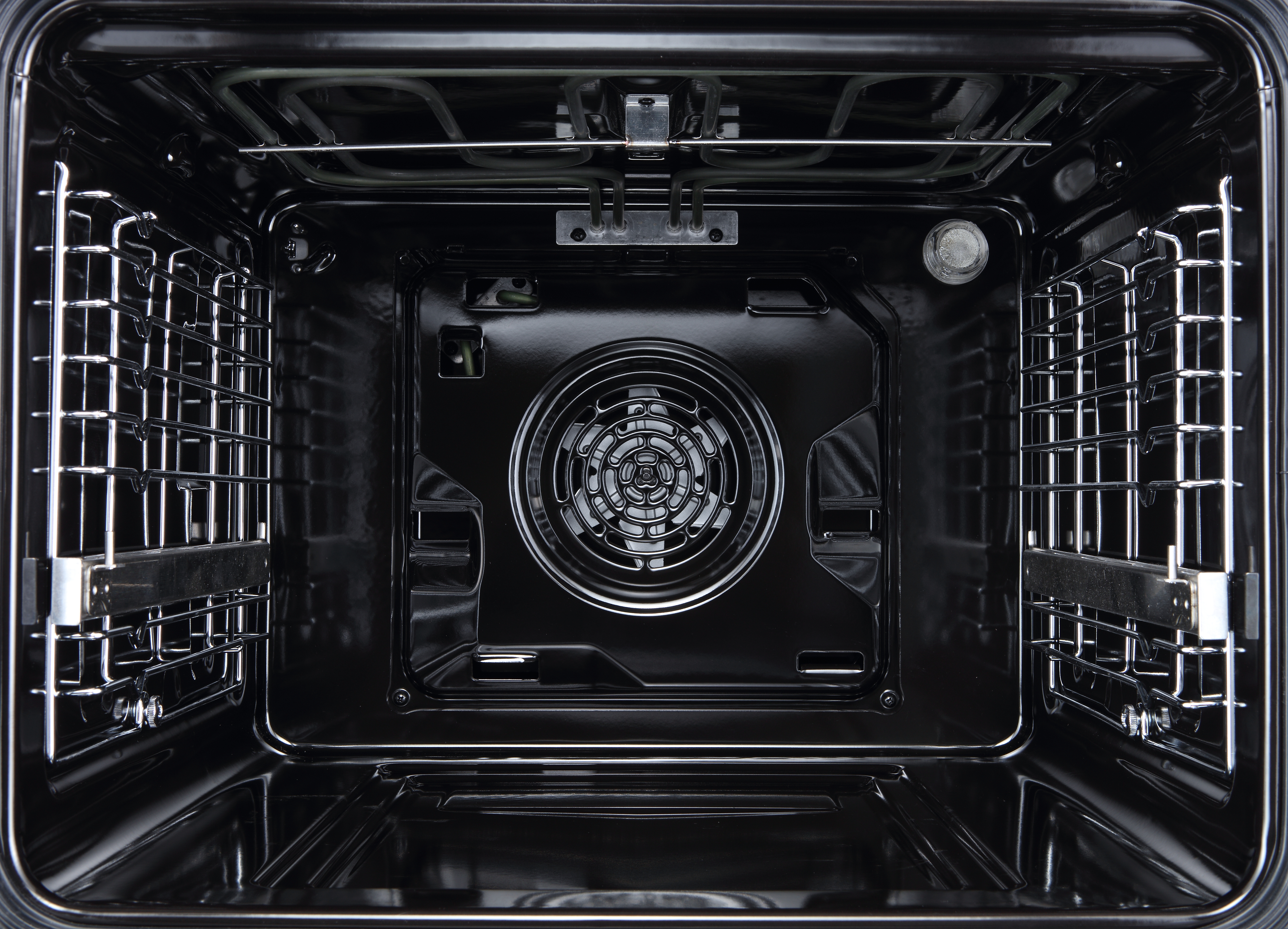 Электрический духовой шкаф встраиваемый полноразмерный, 60 см, 9 режимов, объем духовки 70л, утапливаемые переключатели, большой дисплей Snow White, хромированные боковые решетки, телескопические направляющие 1 уровень, панель управления - нержавеющая сталь, универсальный противень, решетка-гриль, тройное стекло дверцы, легко-съемное большое внутреннее стекло Full Glass, защитное отключение, охлаждающий вентилятор, электронный таймер 9 часов, 595х575х595 мм.