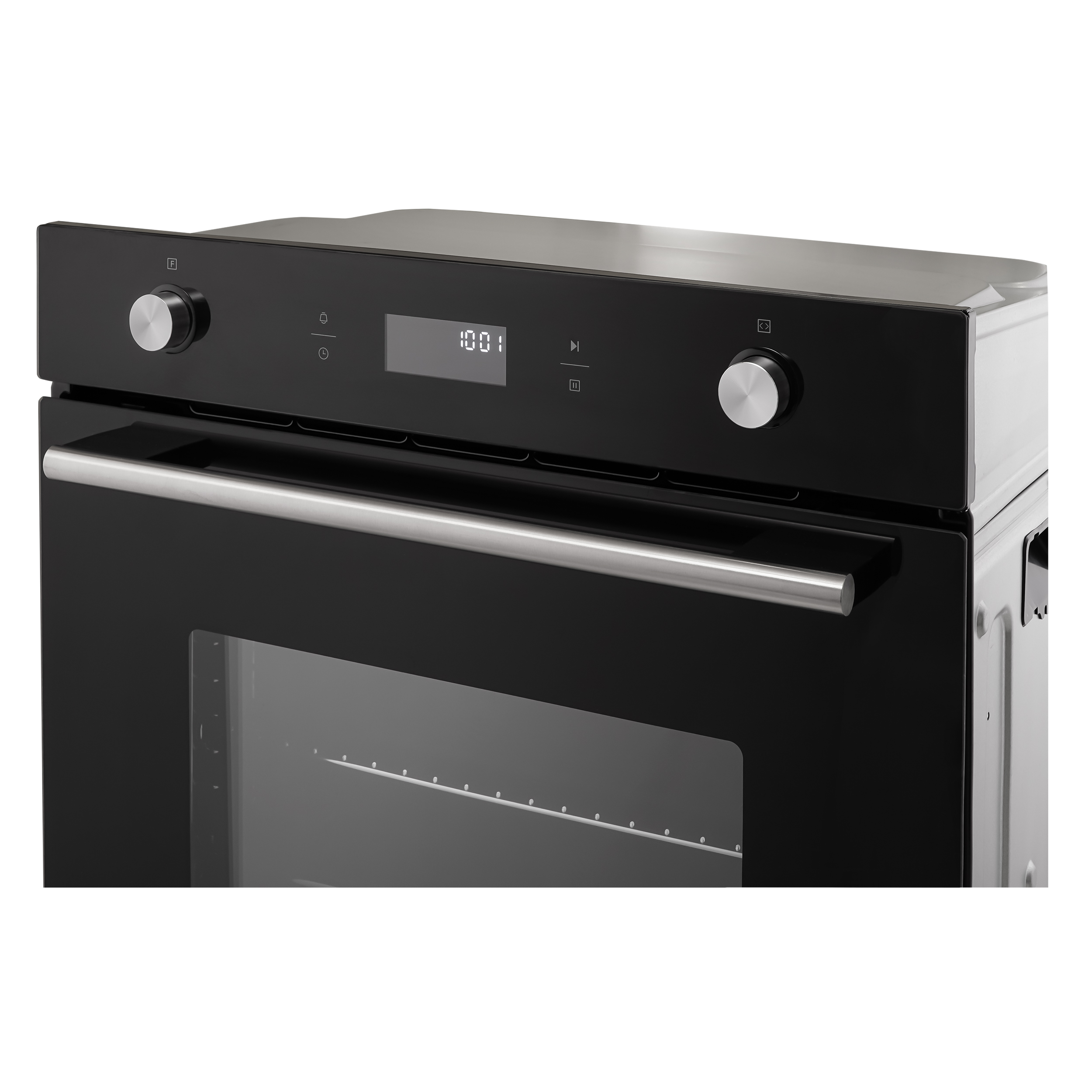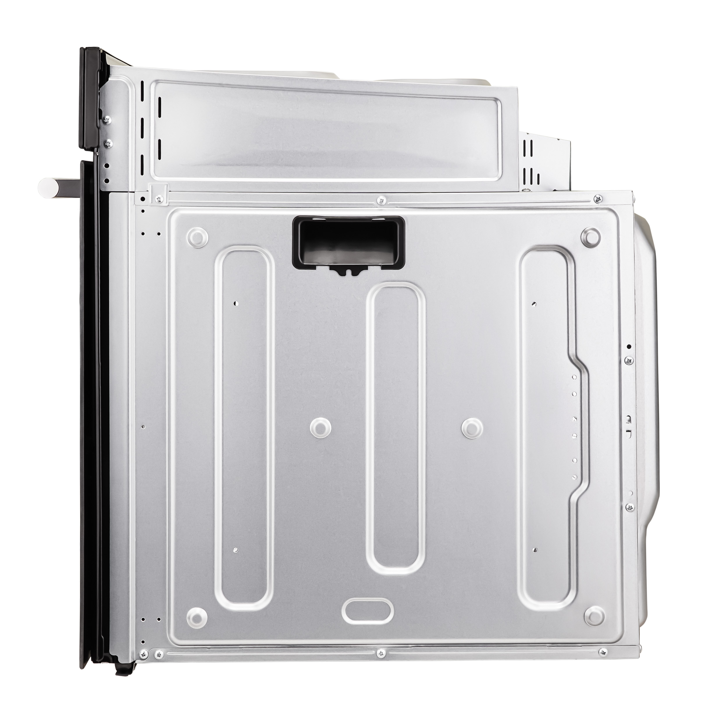 Электрический духовой шкаф встраиваемый полноразмерный, 60 см, 9 режимов, объем духовки 70л, утапливаемые переключатели, большой дисплей Snow White, хромированные боковые решетки, телескопические направляющие 1 уровнь, панель управления - черное стекло, универсальный противень, решетка-гриль, тройное стекло дверцы, легко-съемное большое внутреннее стекло Full Glass, защитное отключение, охлаждающий вентилятор, электронный таймер 9 часов, 595х575х595 мм.