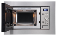 Встраиваемая микроволновая печь с грилем, 20 л, номинальная входная мощность микроволны 1050 Вт, номинальная выходная мощность микроволны 700 Вт, гриль 1000 Вт, дисплей Snow White, электронное управление, 8 автоматических программ, разморозка по весу и времени, комби режимы, внутреннее покрытие сталь, нержавеющая сталь + черное стекло, габариты для встраивания (ШхВхГ): 560х362х320 мм.