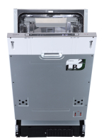 Встраиваемая посудомоечная машина узкая, 45 см, выдвижной лоток для столовых приборов, 7 программ, 10 комплектов, дисплей, таймер 1-24, А++АА, 49 дб уровень шума, регулировка корзины по высоте Easy Lift, половинная загрузка, луч на полу, 9 л потребление воды, система защиты от протечек, внутренняя поверхность из нержавеющей стали, 448х550х815 мм