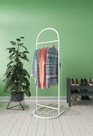 Оригинальная дизайнерская стойка для одежды ручной работы – идеальное решение для гардеробных загородных домов, прихожих квартир, примерочных бутиков одежды, специализированных отделов супермаркетов. Она выполнена в виде прочной металлической рамы, отличаются удобством и практичностью. Устойчивость этой модели рейла обеспечивает достаточно большое по площади основание, к которому жёстко прикреплена рама. При этом изделие немного весит, что позволяет с лёгкостью переставлять конструкцию с места на место.