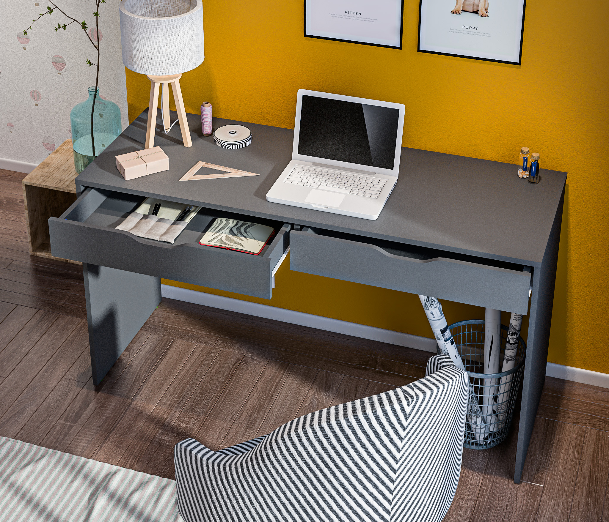 Минималистичный декор, отсутствие ручек и нейтральный цвет стола позволят разместить его в любой интерьер. Также вы можете дополнить письменный стол Бруклин комодами одноименной коллекции.