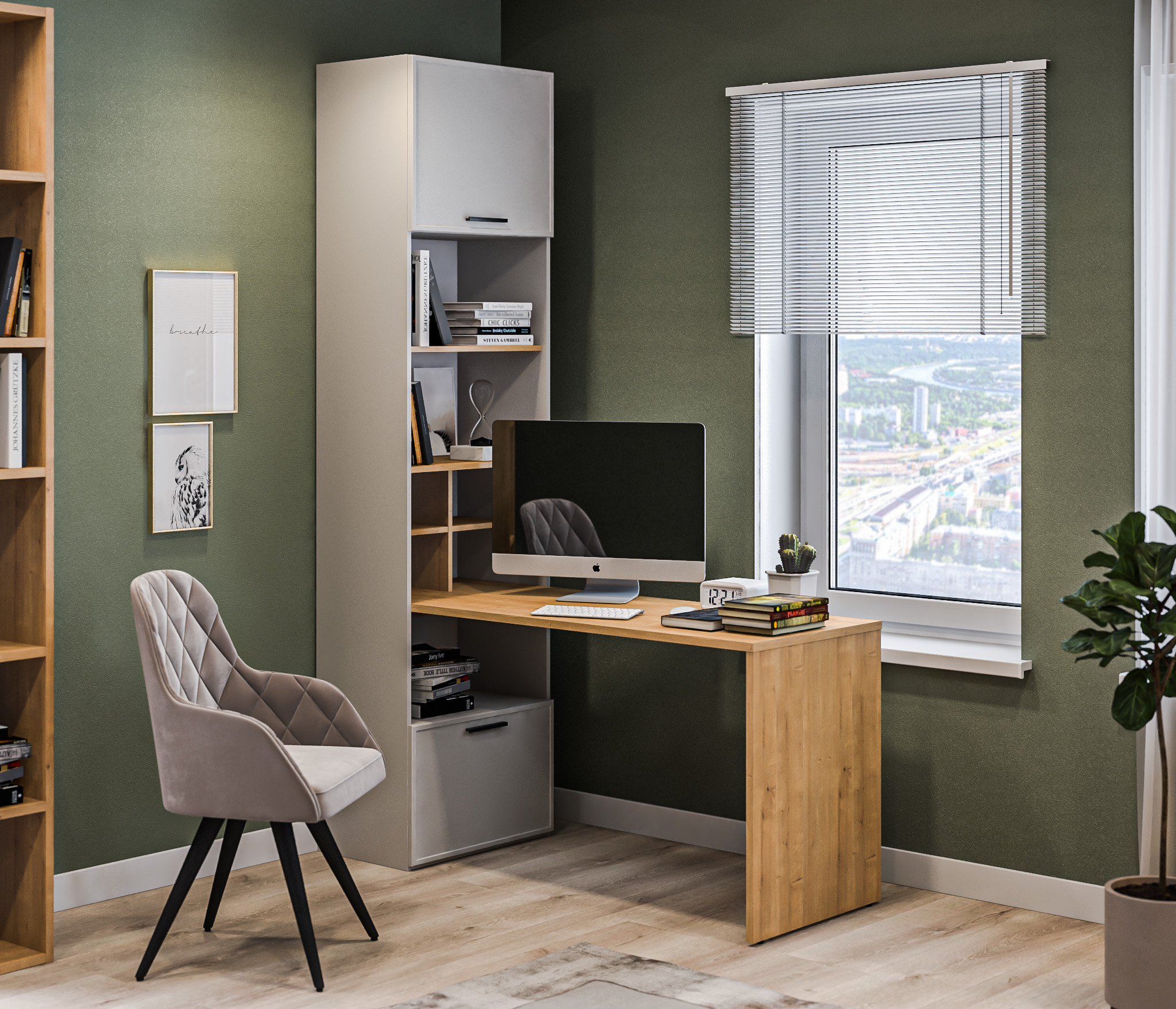 Стеллаж со столом Милан СБ-3261 Серый,Дуб Гамильтон/МДФ Светло серый (Серый,Дуб Гамильтон)