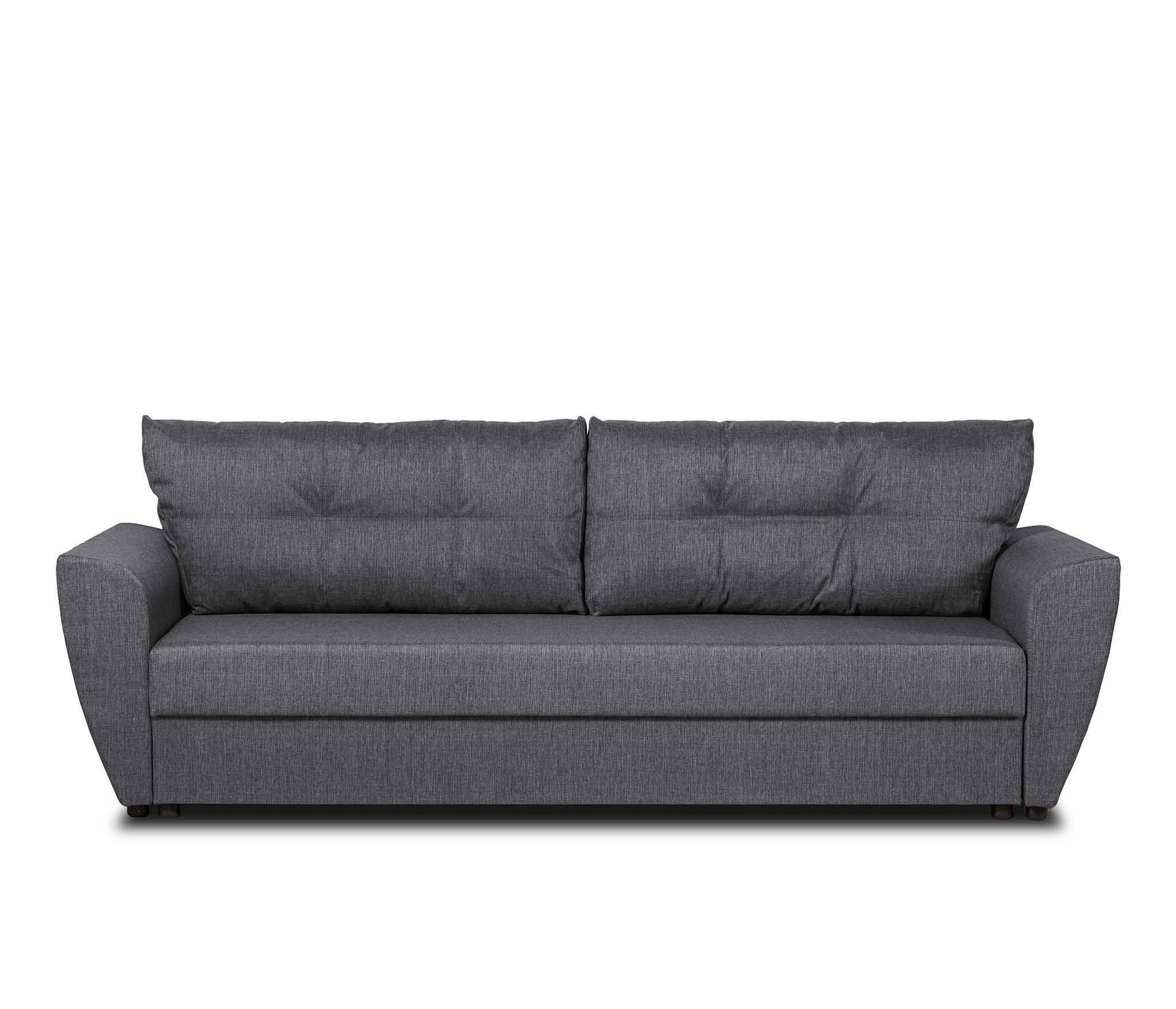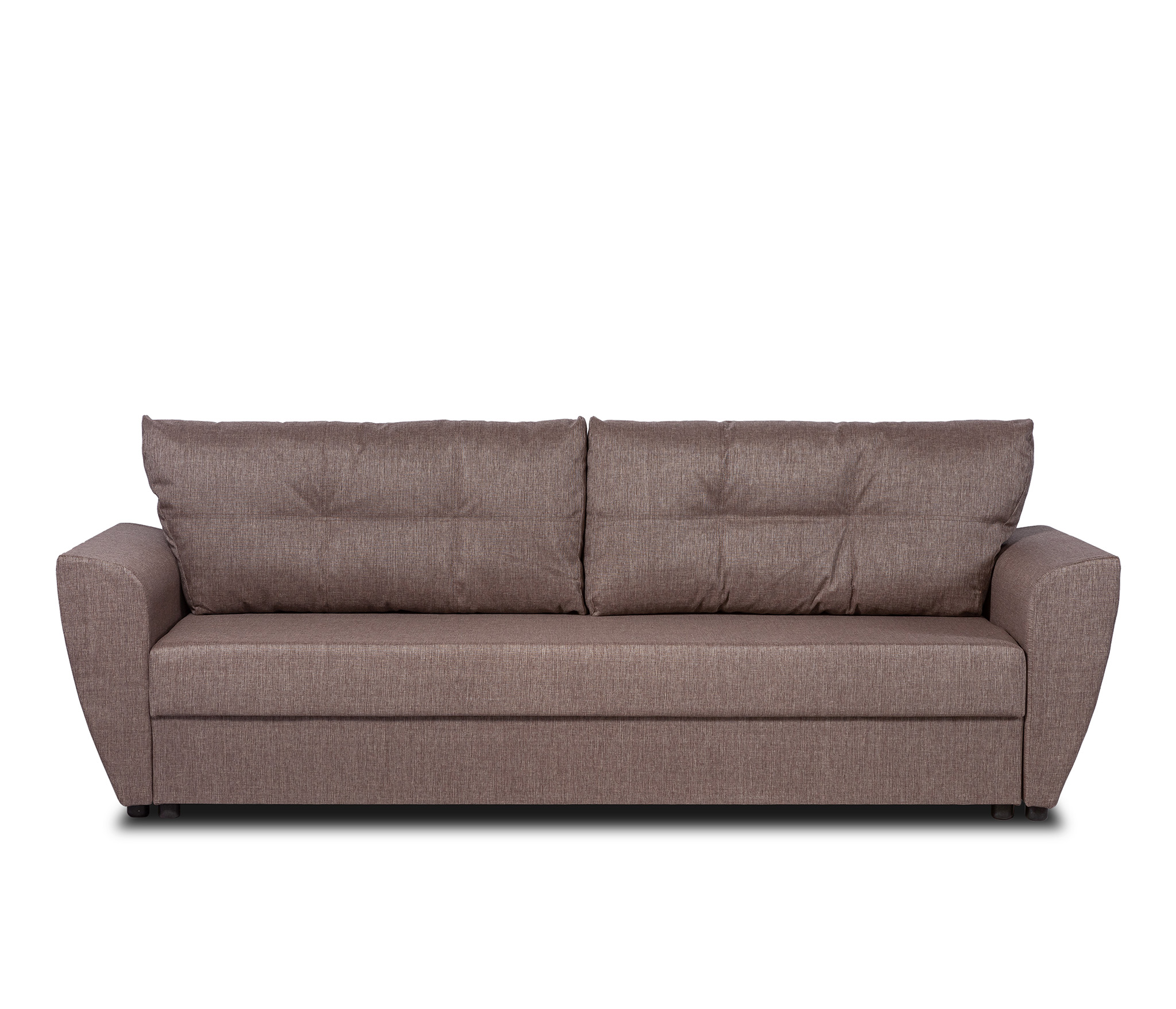 Стильный и лаконичный - прямой диван-кровать «Ампир». Диван -кровать «Ампир» — это классическая «еврокнижка», уместно впишется как в интерьер гостиной, так и зальной комнаты. Практичным решением для оптимизации пространства является механизм трансформации еврокнижка, ведь он совмещает в себе удобство конструкции и простоту ее эксплуатации. Дизайн подлокотников придает дивану завершенность образа и стильную геометрию линий.