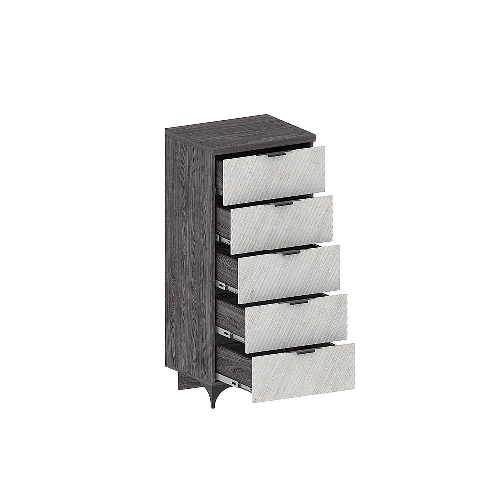 Комод укомплектован направляющими полного выдвижения. Строгая лаконичная ручка черного цвета. Крышки 32 мм.