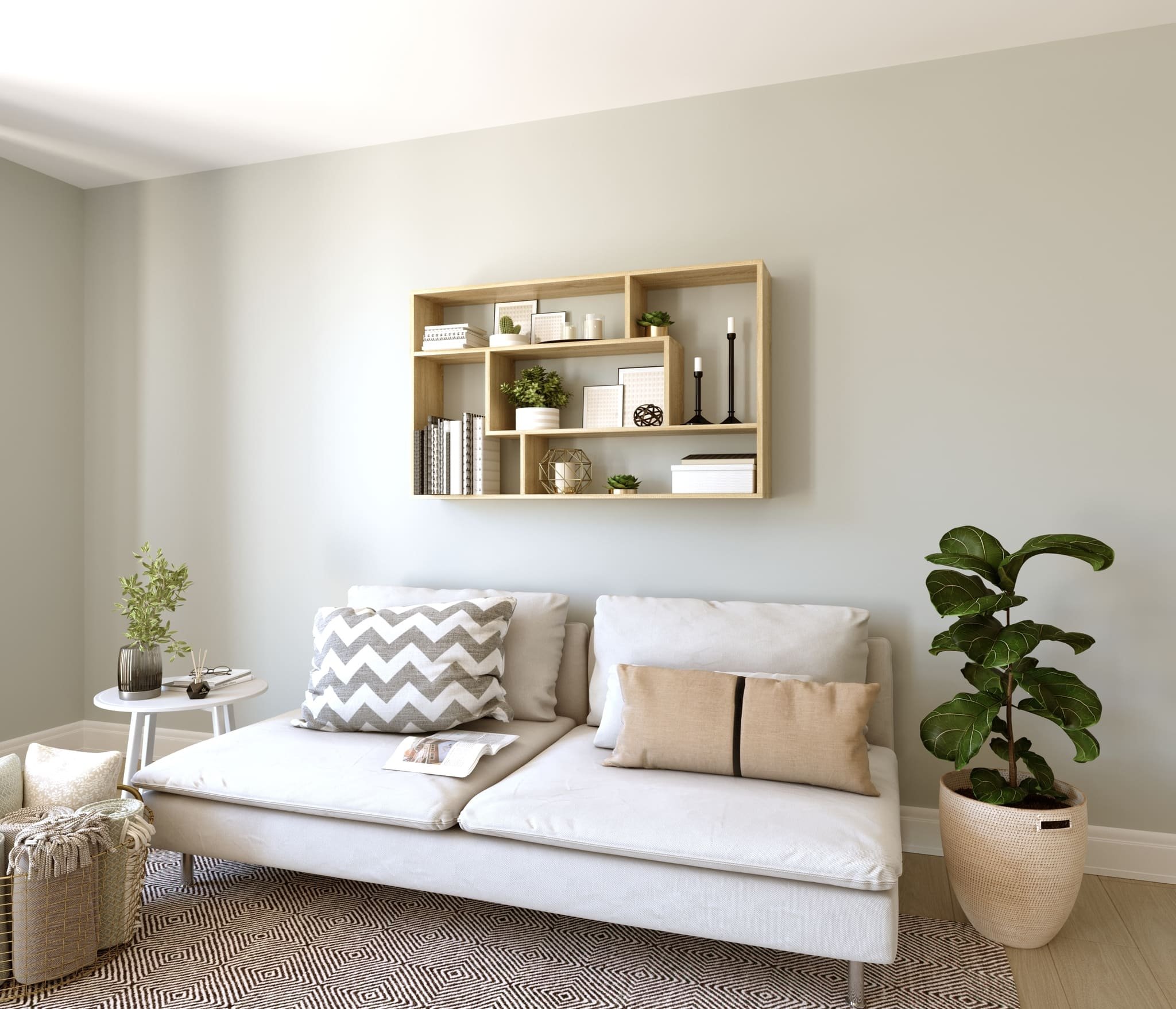 Полка настенная П-5 изготовлена из ламинированной ДСП 16 мм..Высотой 800 мм,шир 1150 мм и глуб 200 мм имеет 5 отсеков различной формы для хранения разных вещей.