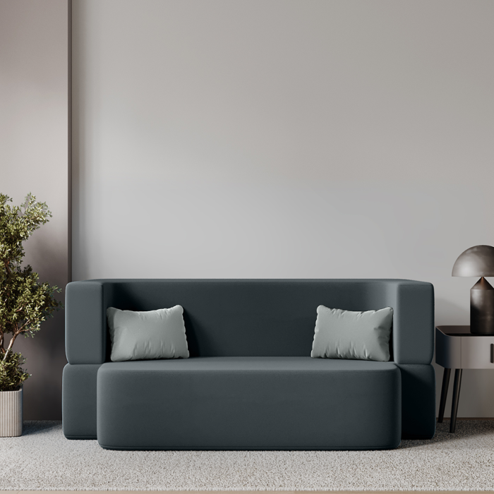 Раскладной диван легко трансформируется из удобного места для отдыха в полноценное двухспальное место. Для раскладывания необходимо сделать несколько простых операций: потянуть вперед спинку-подлокотник за специальные ручки и разложить. Его можно использовать в качестве кровати для одного взрослого человека или как двуспальный диван. Это особенно удобно, если у вас часто остаются гости на ночь. Наш Дадли мягкий и большой, на нем будет комфортно спать и сидеть.