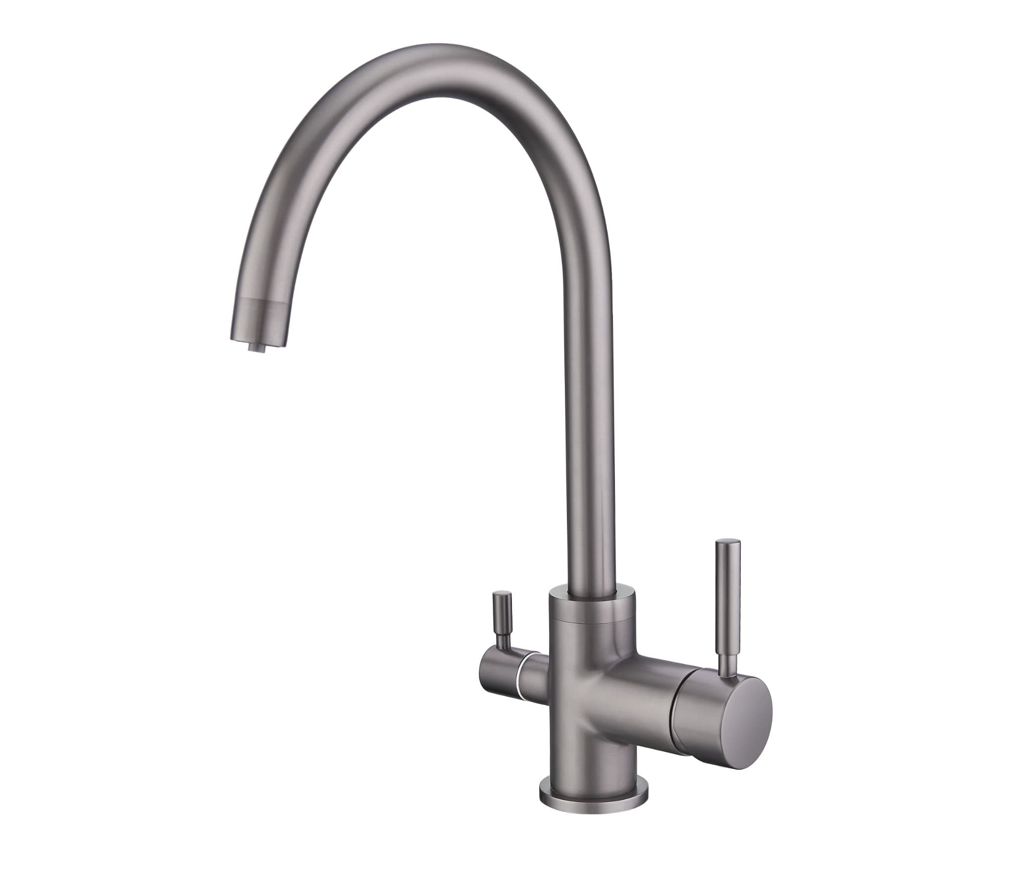 Современный, надёжный смеситель идеально подходит ко всем мойкам мраморной серии GranFest. 3650 - практичная модель с высоким U-образным изливом, изготовлен из долговечной латуни высокого качества. Напор и температура воды регулируется при помощи однорычажного механизма с бесшумным керамическим картриджем 35 мм.