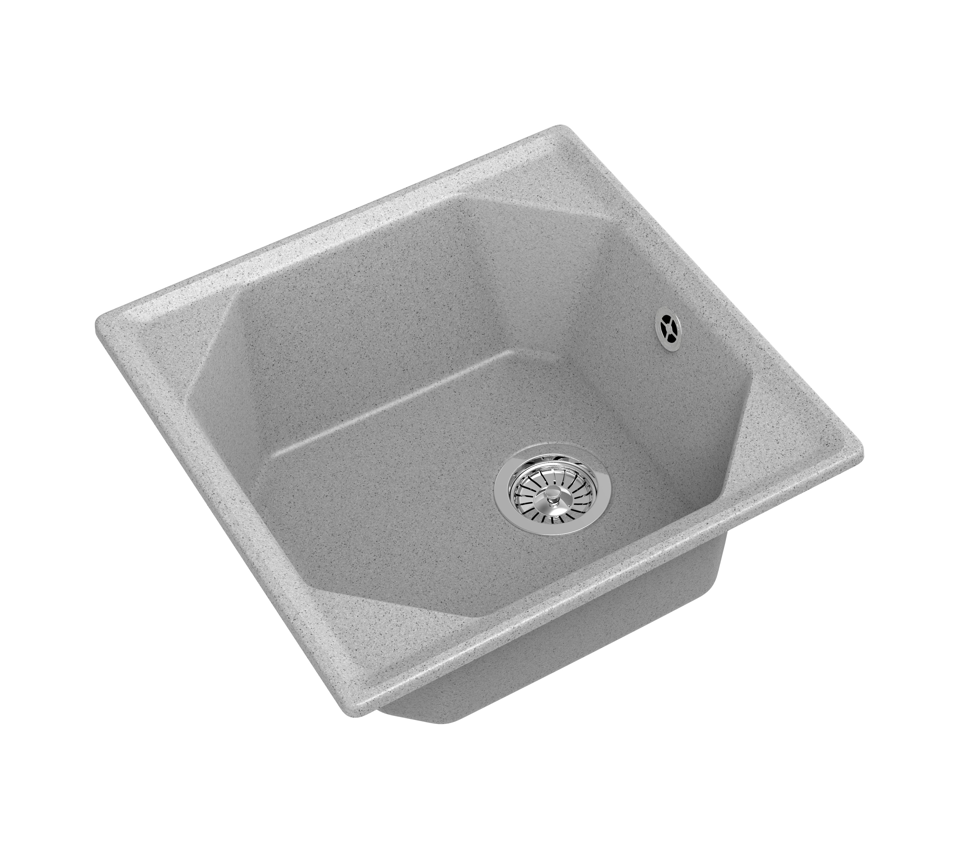 Мойку для кухни GranFest UNIQUE 500 легко отличить от любых других благодаря выраженной геометрии. Дизайнерскую модель отличают практичная чаша оригинальной формы размером 435*435 мм, и глубиной 200 мм, которая с легкостью позволит разместить внутри крупногабаритную посуду и промывать ее без лишних усилий. Мойка для кухни устанавливается в шкаф шириной 500 мм, поэтому место для нее найдется даже в небольшом кухонном гарнитуре. Готового отверстия под смеситель нет. Поэтому вы можете либо сделать его в удобном месте, либо установить смеситель прямо в столешницу. Модель GranFest выполнена из композитного материала, в основе которого лежит мраморная крошка и базальтовое волокно, что обуславливает повышенную прочность и долговечность. За счет скошенных, не острых углов чаши, и стойкому защитному покрытию ухаживать за чашей мойки одно удовольствие.