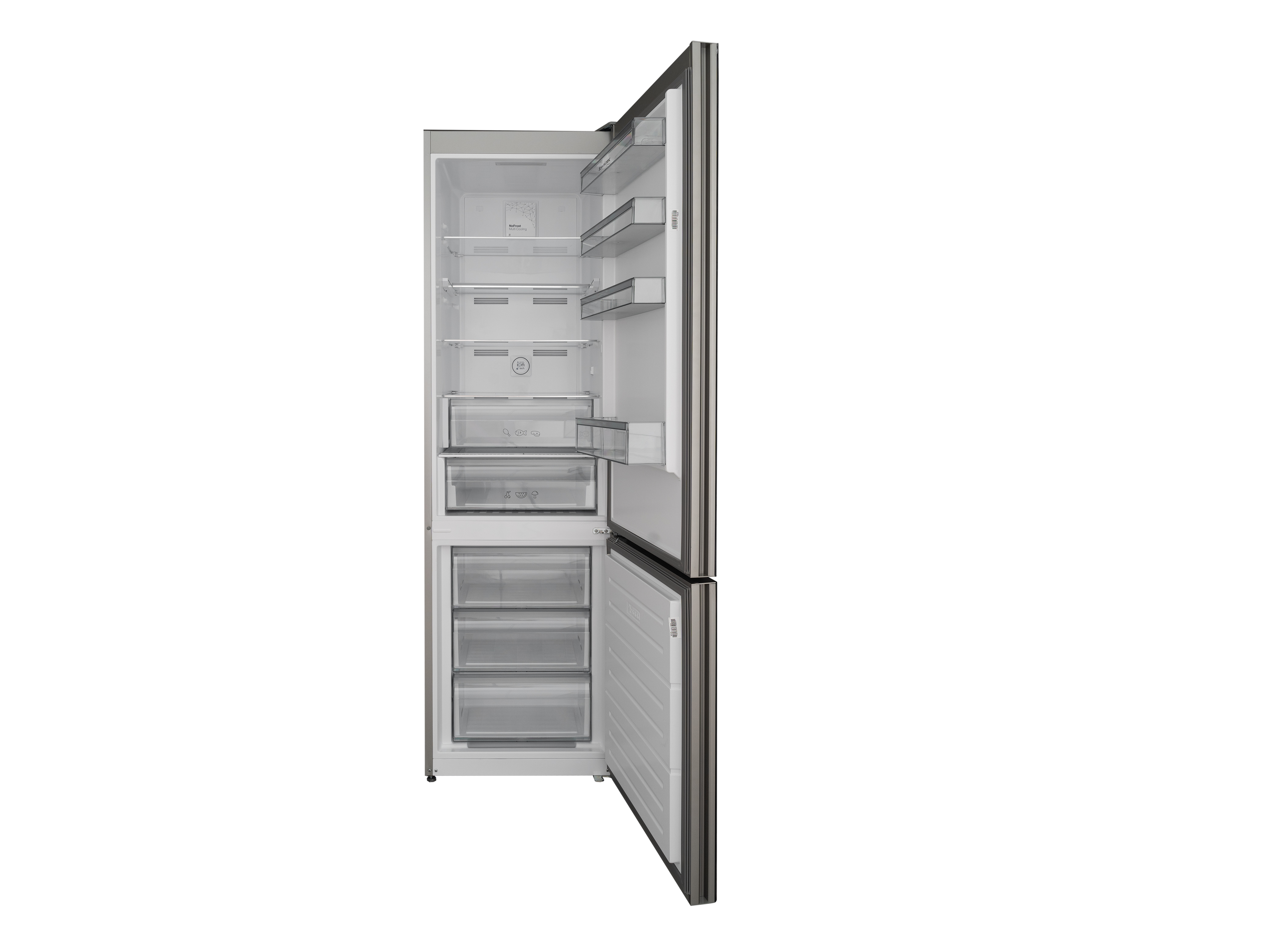 Система разморозки холодильника – NO FROST Multi Cooling, поэтому благодаря этой особой микро-вентиляционной технологии температура внутри холодильной камеры распределяется равномерно. Продукты хранятся дольше, а потребление электроэнергии заметно снижается. Никакой наледи и конденсата, без ручной разморозки.
