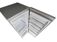 Угол открытия дверей холодильника 90° благодаря технологии Zero Clearance позволяет установить холодильник вплотную к стене. При этом ящики и полки полностью вынимаются из холодильника, дверца не мешает.