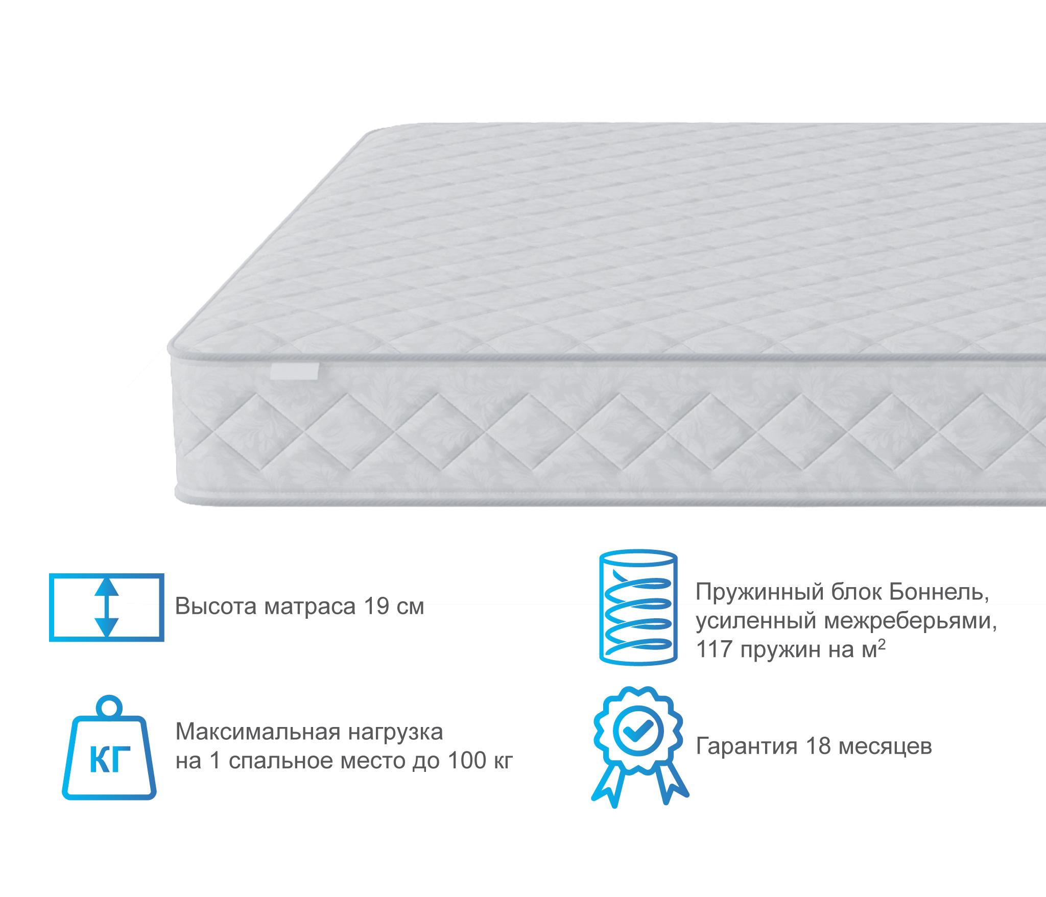 Чехол изготовлен из очень прочного хлопкового жаккарда. Эта ткань стойка к истиранию, благодаря чему обеспечивается длительный срок службы матраса. Не отказывайте себе в полноценном сне закажите «Классик-Оптима 900*1900».