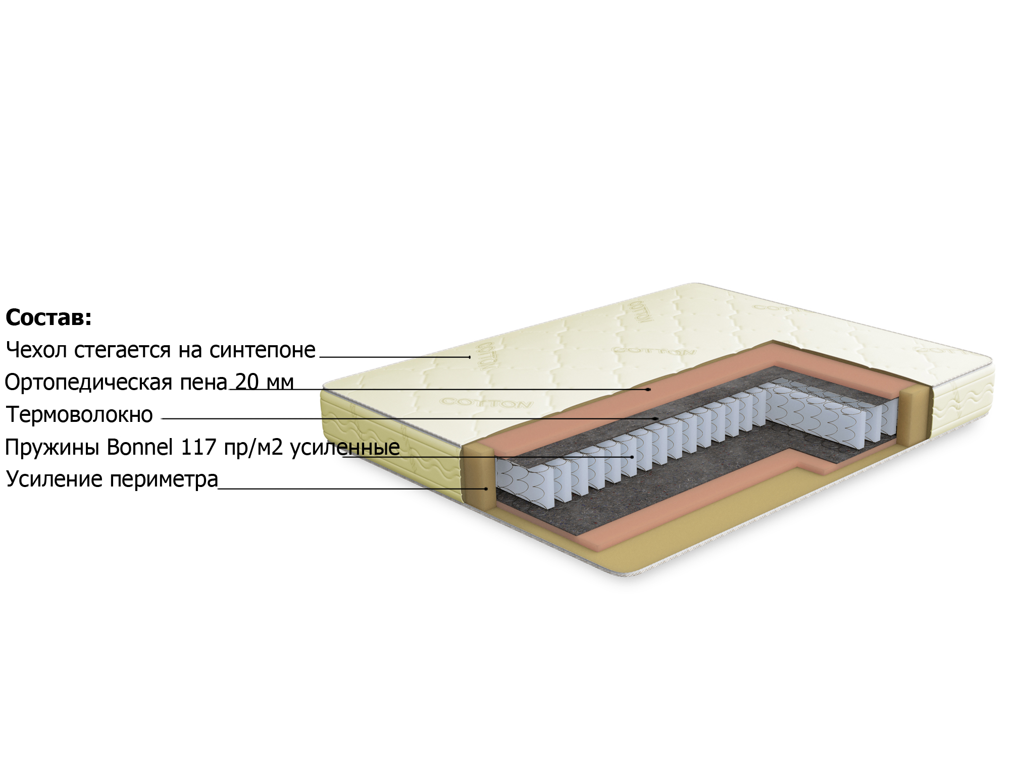 Качественный, прочный матрас, довольно жёсткий, хорошо держит массу людей на нем спящих.