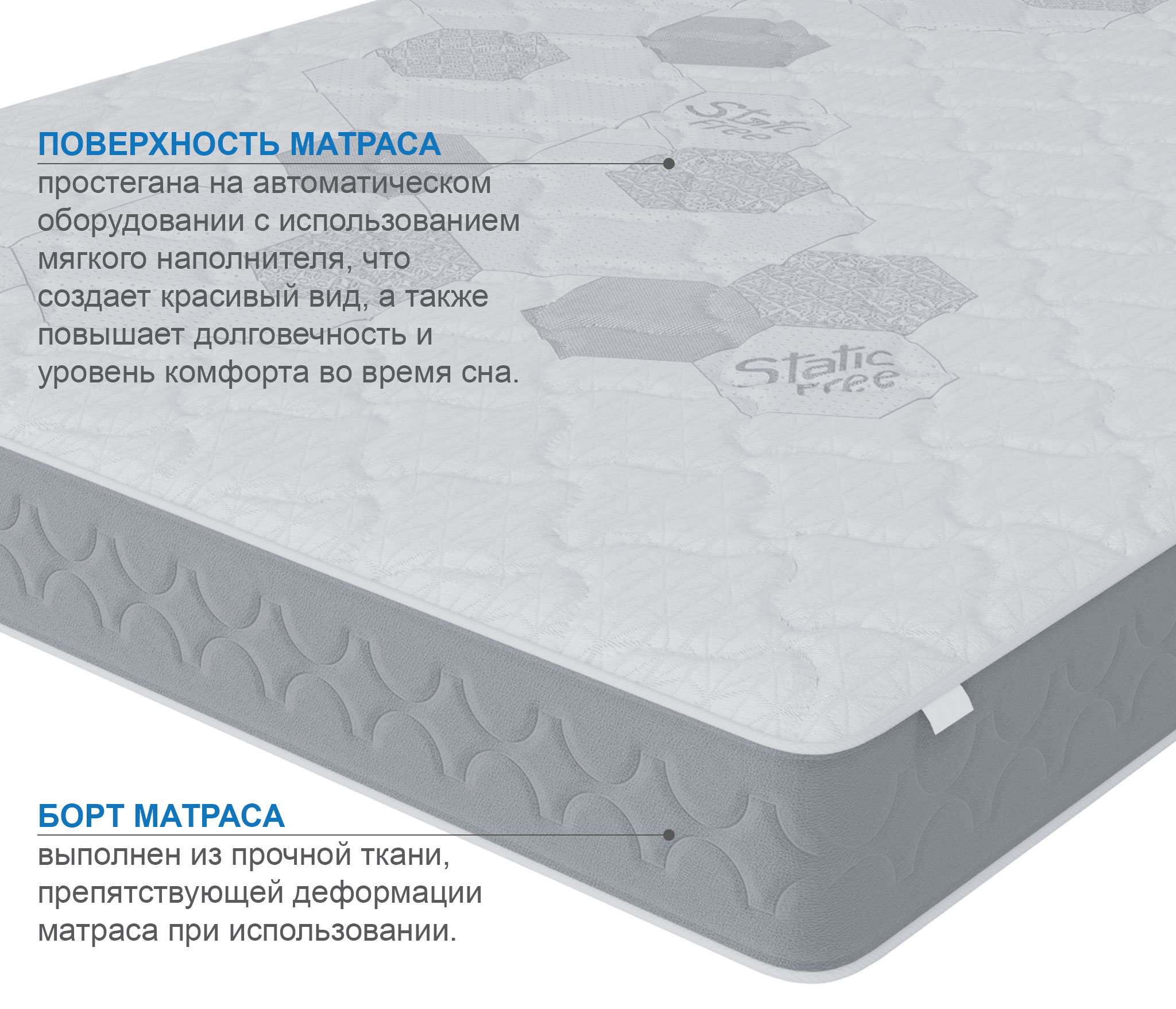 Отличный матрас, покупали через интернет к кровати "Гретта". Спать удобно, материал гладкий, а сам матрас не очень жесткий. Мы ведем активный образ жизни, и нам посоветовали выбирать именно среднюю или повышенную жесткость, и не ошиблись.