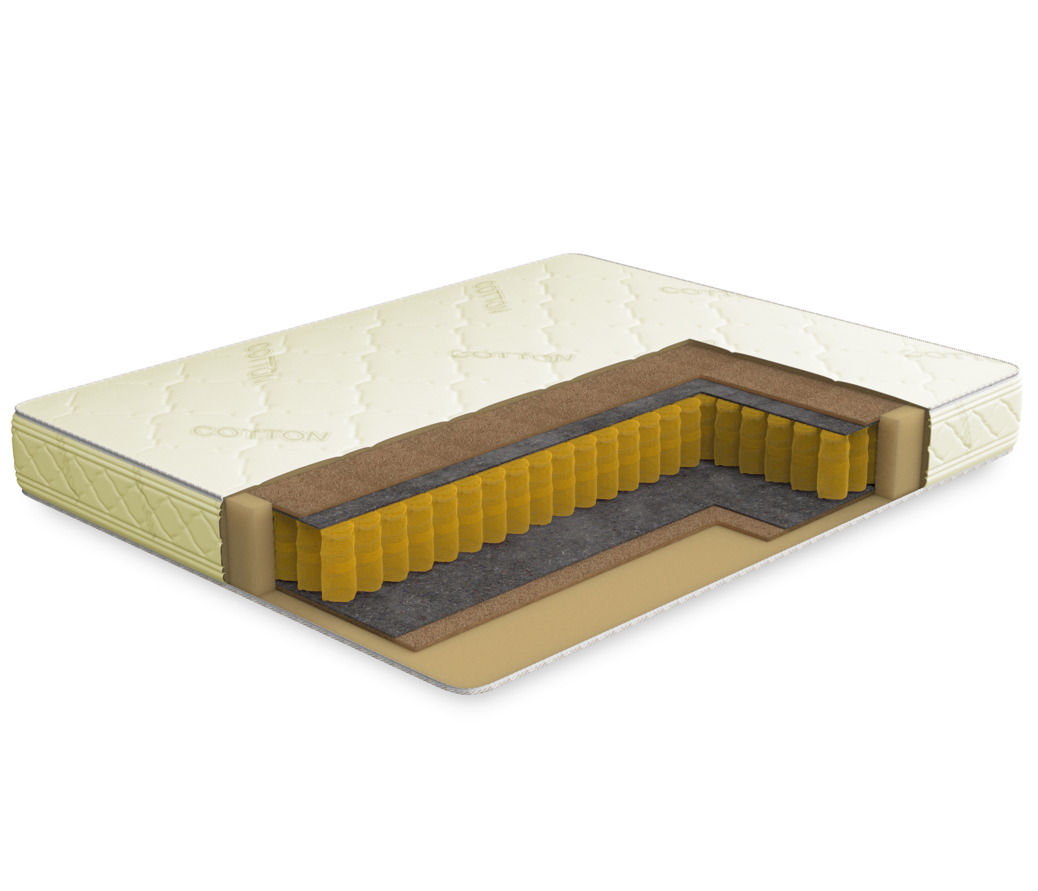 Матрас купили в дополнении к кровати. Остались им довольны. Жесткость у него средняя, спина не устает. Пружин не чувствуешь. Материал обивки хороший, приятный, швы надежные. Спасибо.