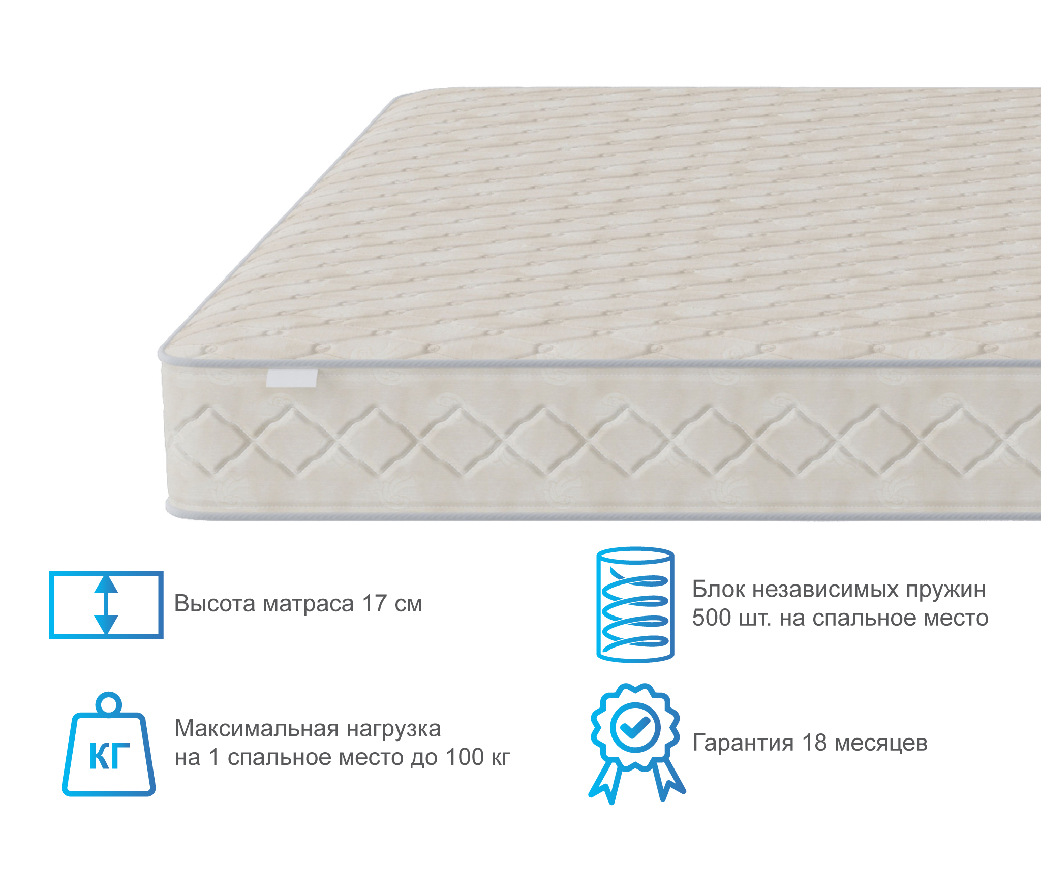 Матрас купили в дополнении к кровати. Остались им довольны. Жесткость у него средняя, спина не устает. Пружин не чувствуешь. Материал обивки хороший, приятный, швы надежные. Спасибо.